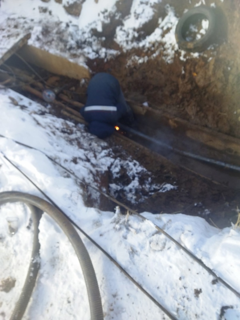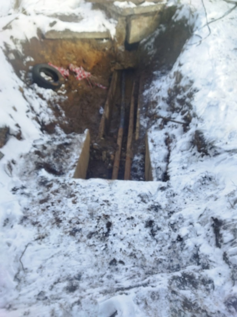 Работала спецбригада УК по ремонту вводов к домам, согласно договору с ресурсниками. У них большая нагрузка, поэтому привлекают на помощь нашу УК в качестве подрядной организации, имеющей все профессиональные возможности производить сложные работы.