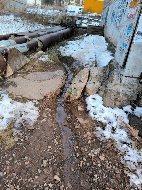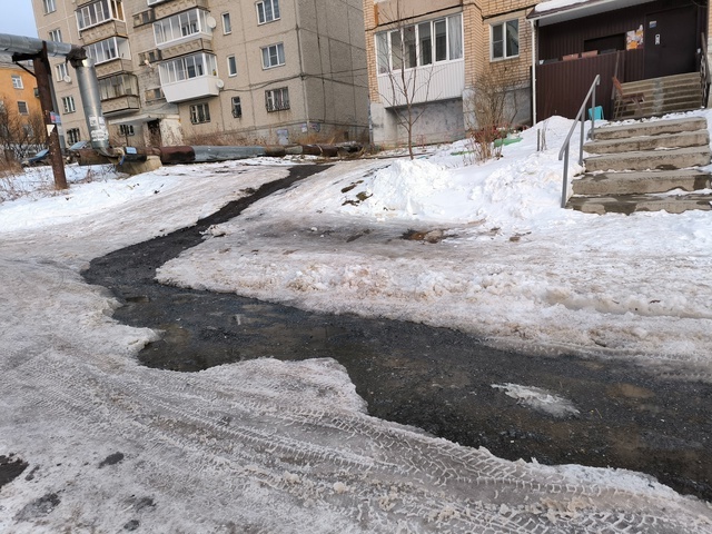 По улице Чкалова течёт поток горячей воды, заливаясь во дворы и растекаясь по проезжей части – порыв трубы горячего водоснабжения около дома ул. Мичурина, 1.
