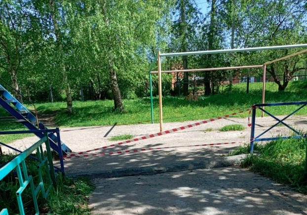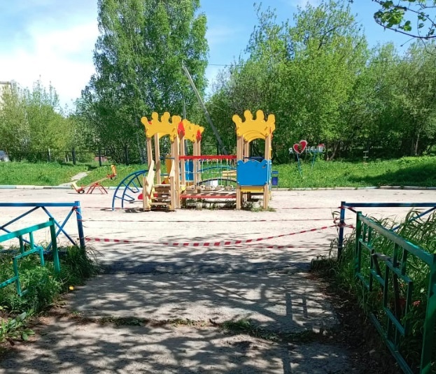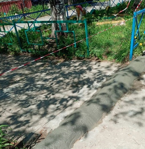 Поэтому жители решили проложить выпуклые защитные полоски, которые отделяют детскую площадку от придомового проезда и направляют потоки воды в палисадники – пусть их поливают!