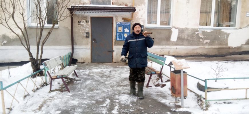 Надежда Сергеевна Степанова — старшая дома №4 по ул. Садовой (посёлок мясокомбината) рассказала: «А у нас дворник в соседнем доме живёт, является