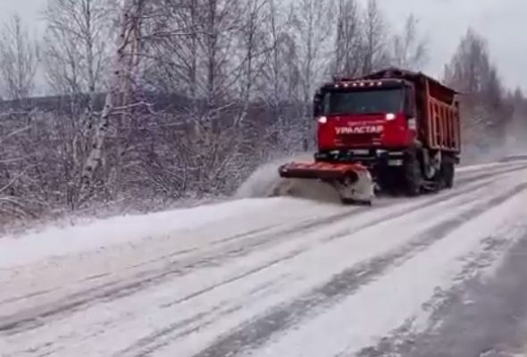 «В Челябинской области продолжает идти сильный снег. В Златоусте уборка проезжей части, пешеходных дорожек, остановок общественного транспорта не прекращается
