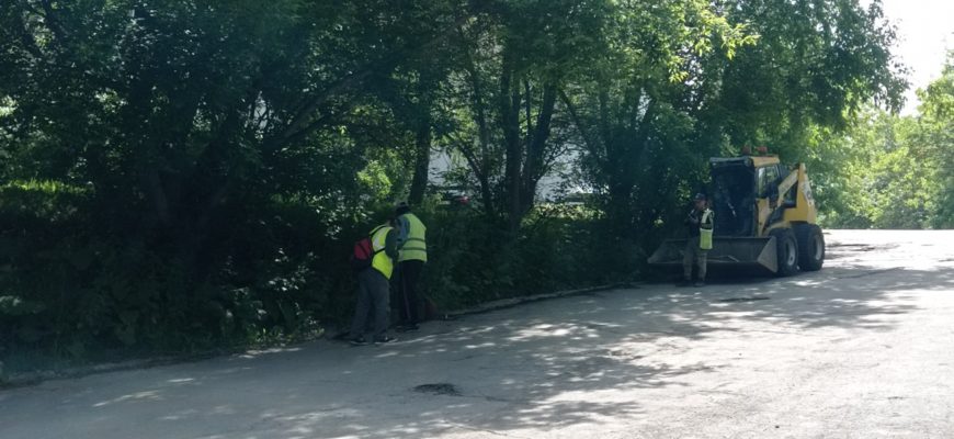 Дорога к домам и к остановке общественного транспорта «Берёзка». Фото от 3-го июля. Подрядчик Управления ЖКХ начал уборку зимнего отсева.