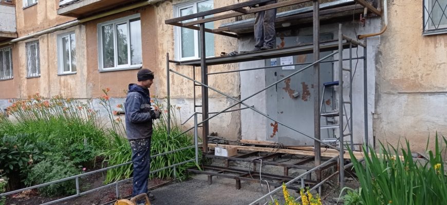 ⚒ ? В череде летних ремонтно-строительных работ также установка новых крылец и козырьков над входными группами. Это – ул. Дворцовая, 26. ?