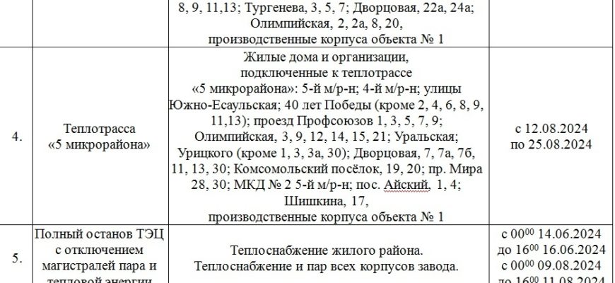 Публикуем график отключения горячего и холодного водоснабжения на летнюю профилактику на вторую половину сезона. Изменений по сравнению с предыдущим вариантом нет.