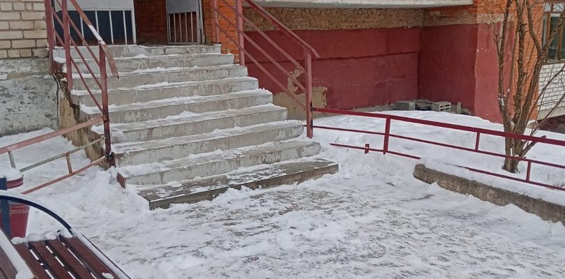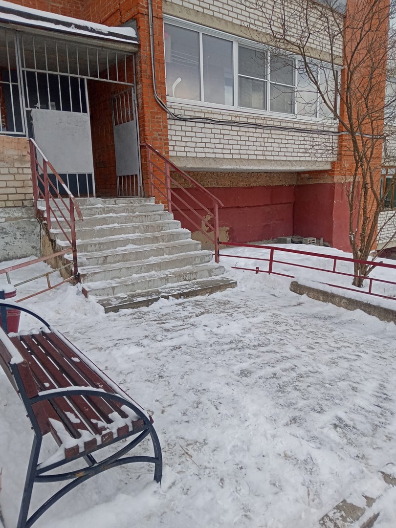 Наледь растаяла, и Ренат просто лопатой все убрал!!! Лестницы сейчас все чистые, около подъездов очистилось почти до асфальта!!!