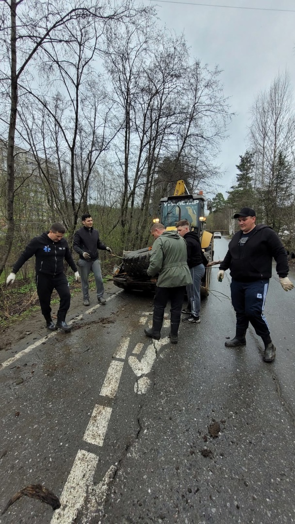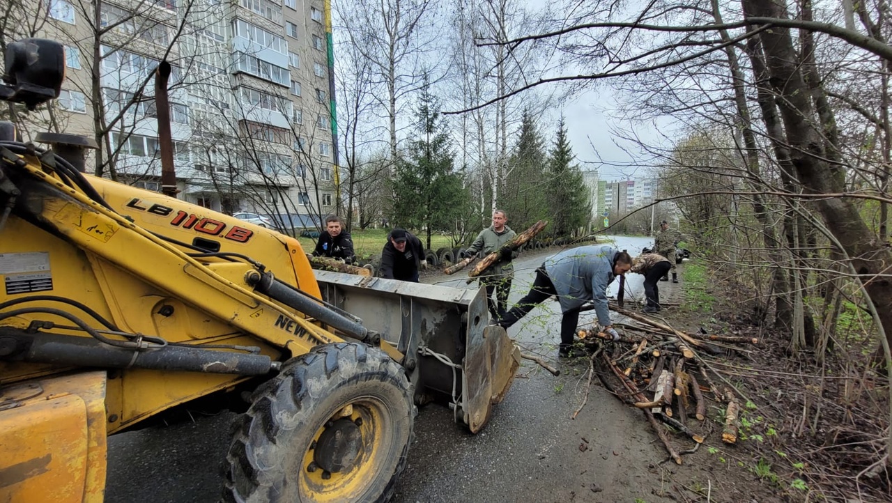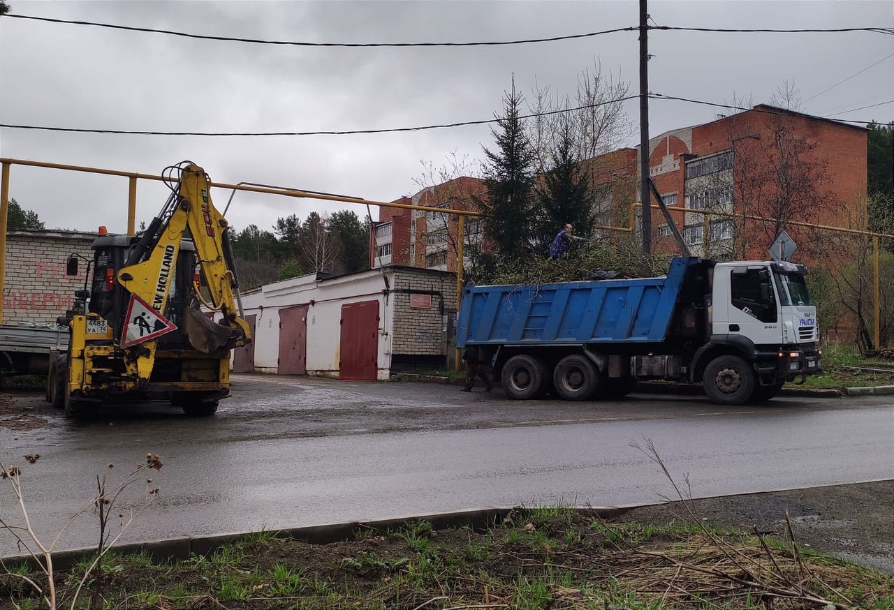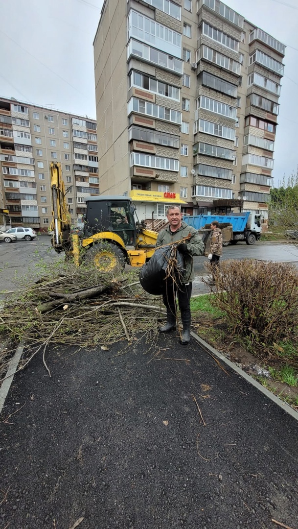 Наша управляющая компания сама подключилась к уборке, предоставила инвентарь. Предприятие «Уралстар» — технику – самосвал и погрузчик.