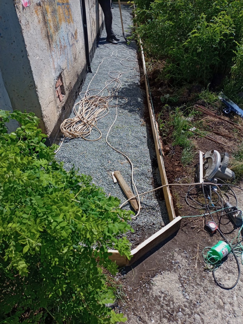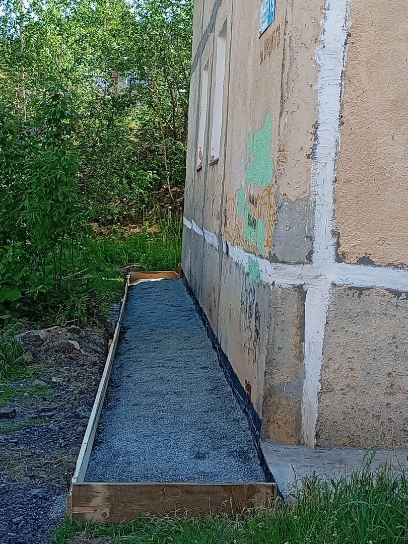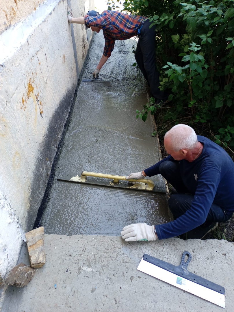 ? О том, как стену обрабатывали праймером (битумом), как работала газовая тепловая пушка, как в опалубку засыпали щебень, устанавливали арматурную сетку, заливали бетон… ?