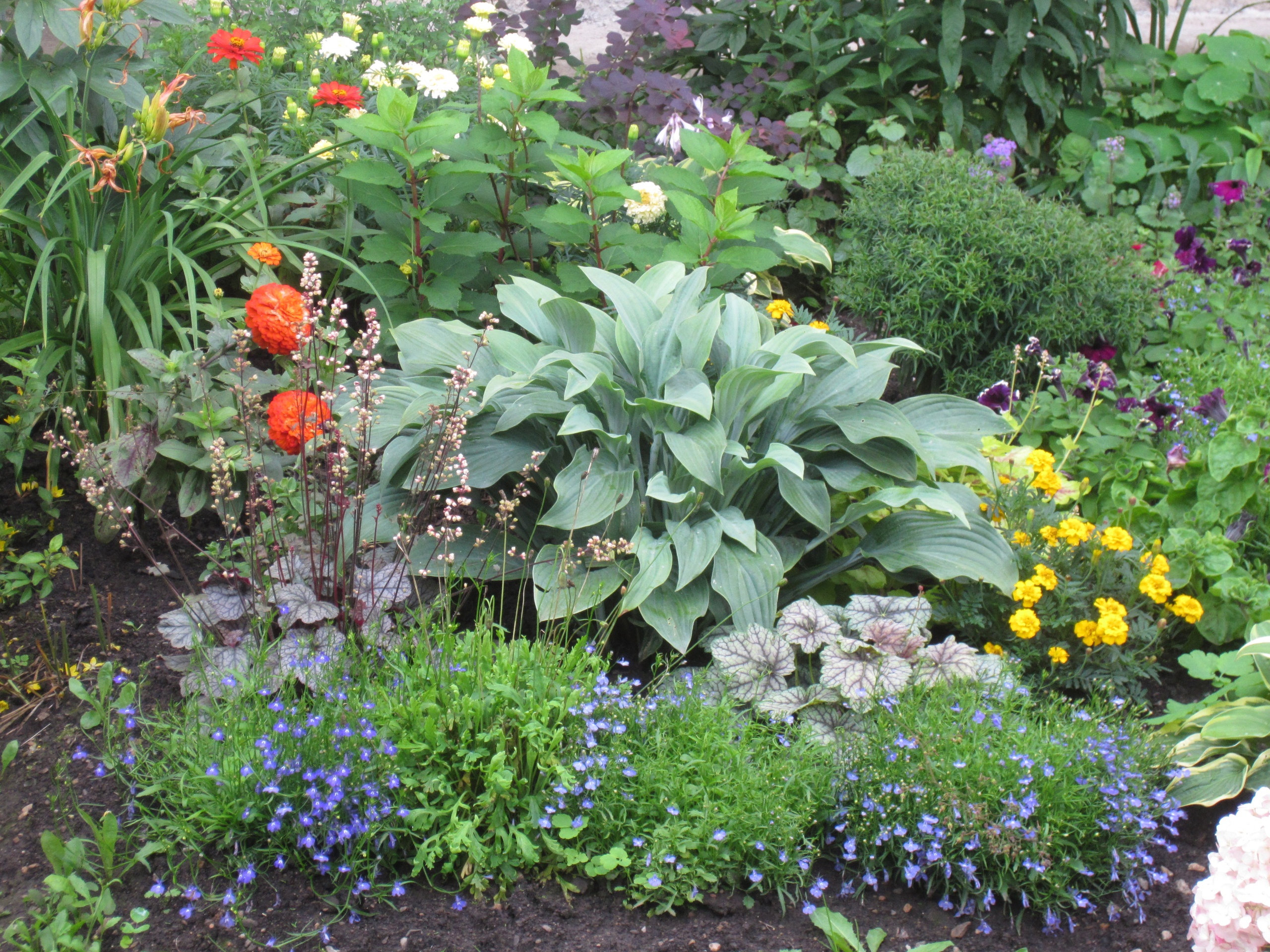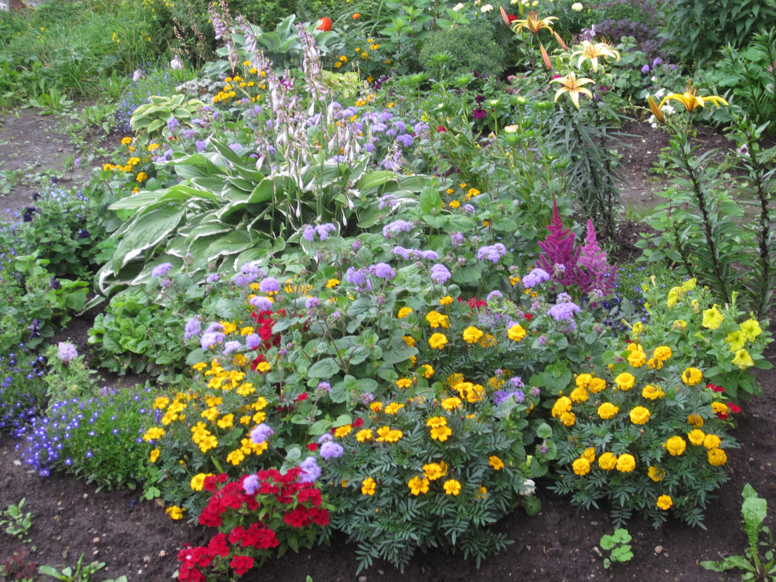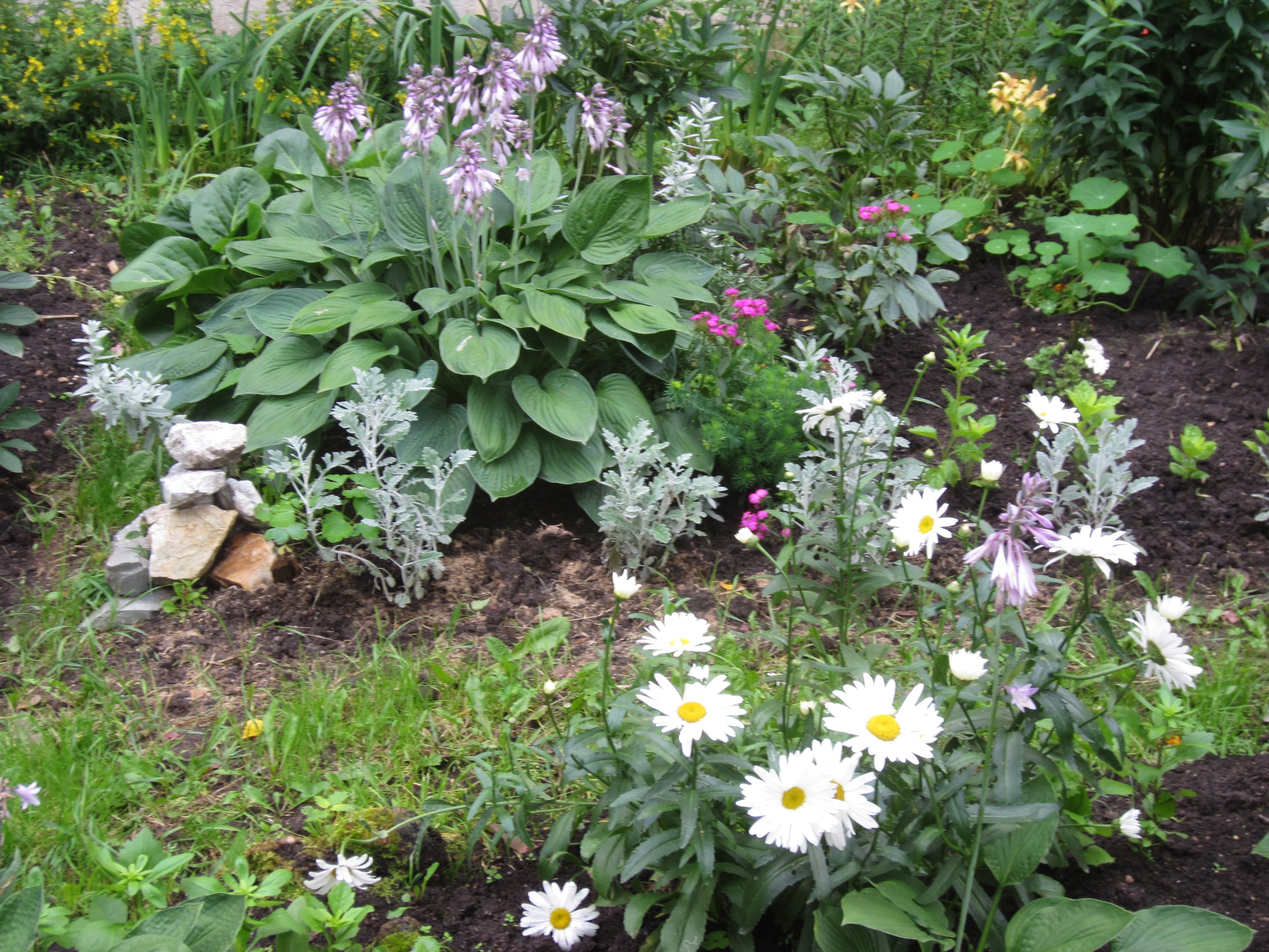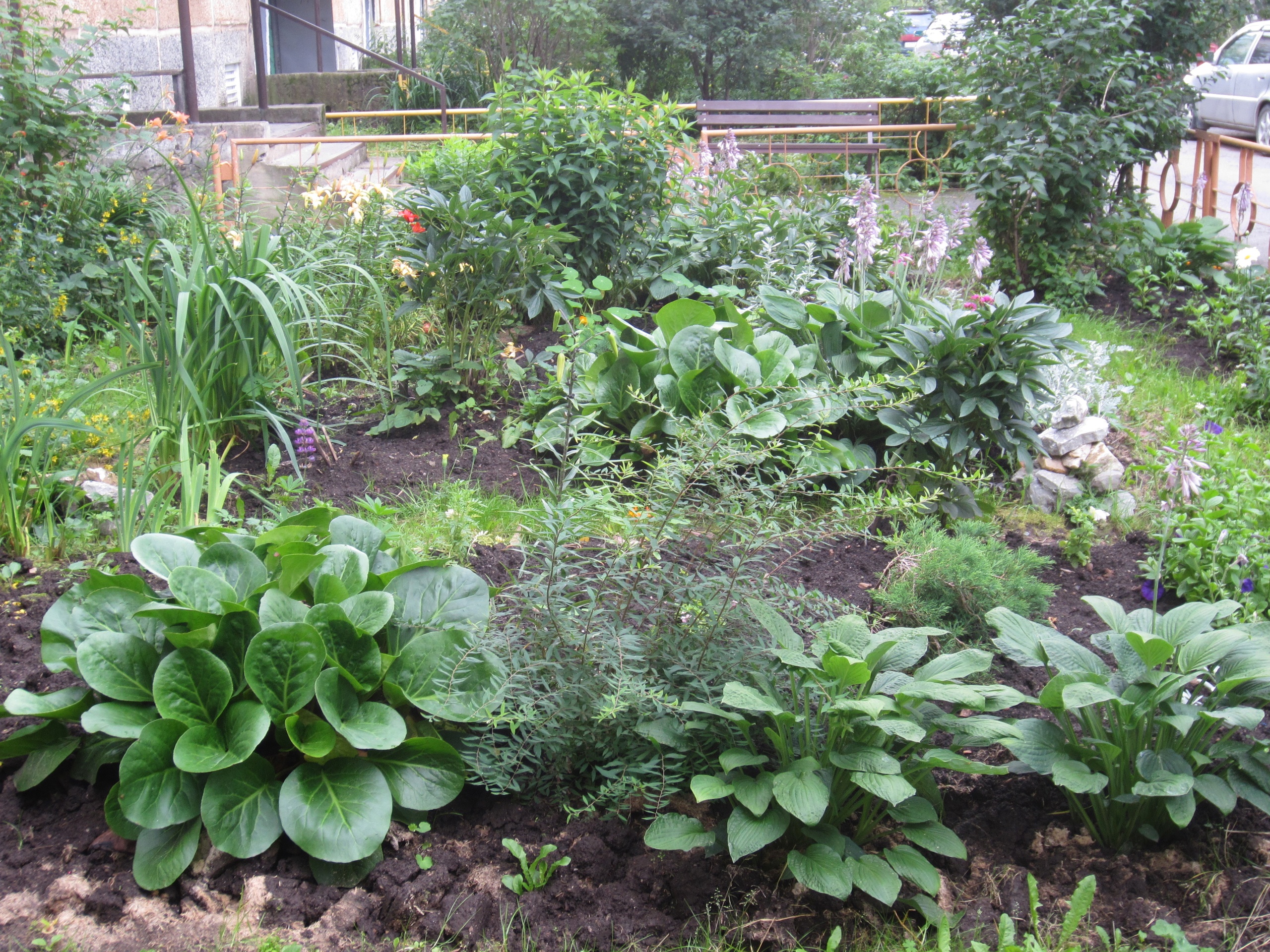 Светлана Перфильева, квартира 62, организует просто ландшафтный дизайн – у 5-го подъезда растения высажены так, что цветение одних сменяет предыдущие. Одни оттенки дополняют другие, гармонично сочетаясь.