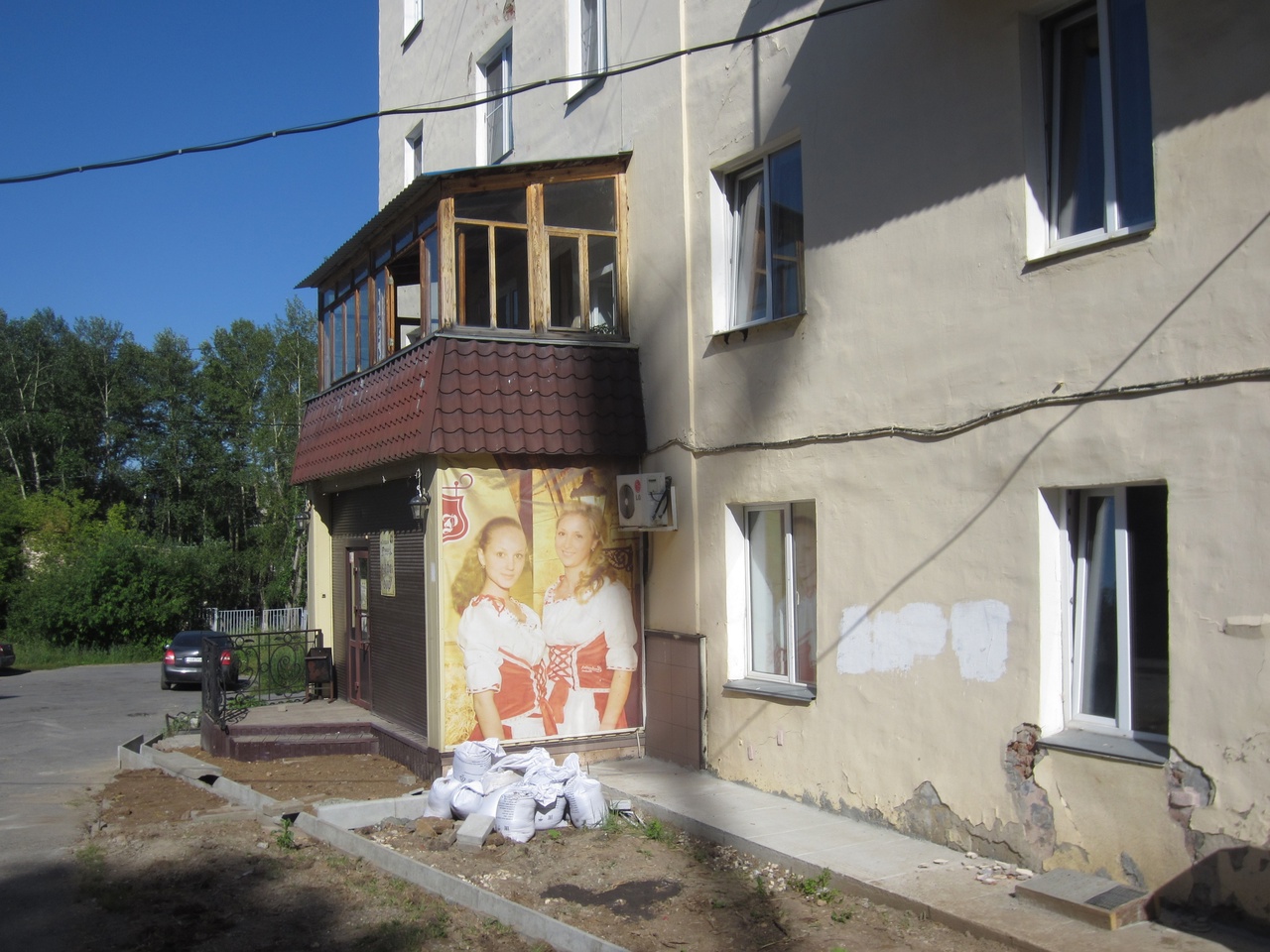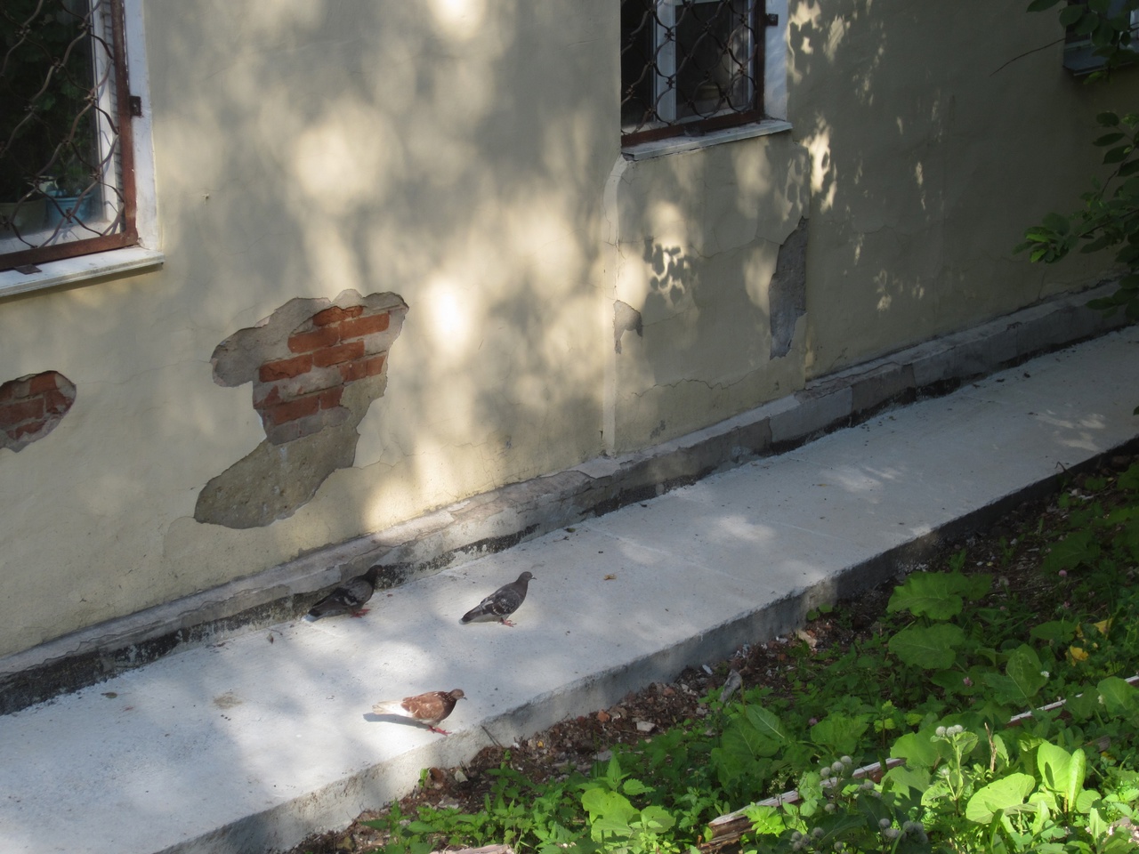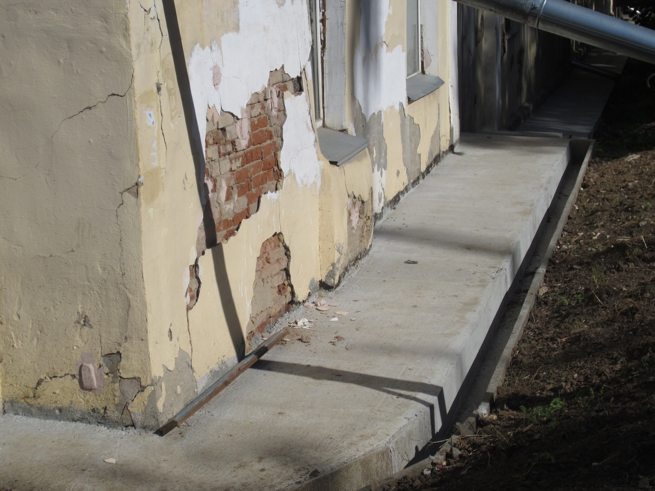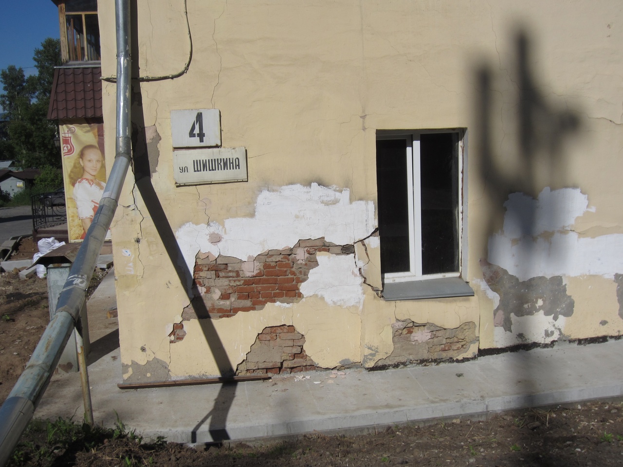 ? Дом, как говорят в народе, «сталинка». Возрастной. Надо было укреплять основу – бетонировать новую отмостку с внешней стороны (со стороны дороги – ул. Шишкина) и с торцевой. ?
