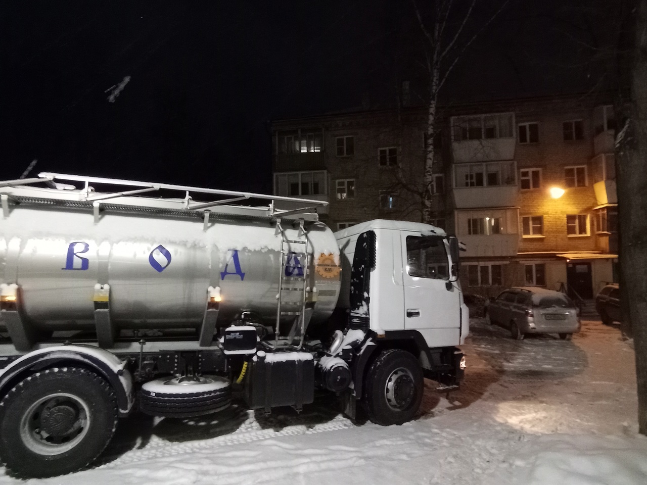 Автоцистерна с холодной водой дежурит во дворе между домами №14 и №16 по ул. Шишкина. МУП ЗГО Златоустовское водоснабжение организовало подвоз воды.