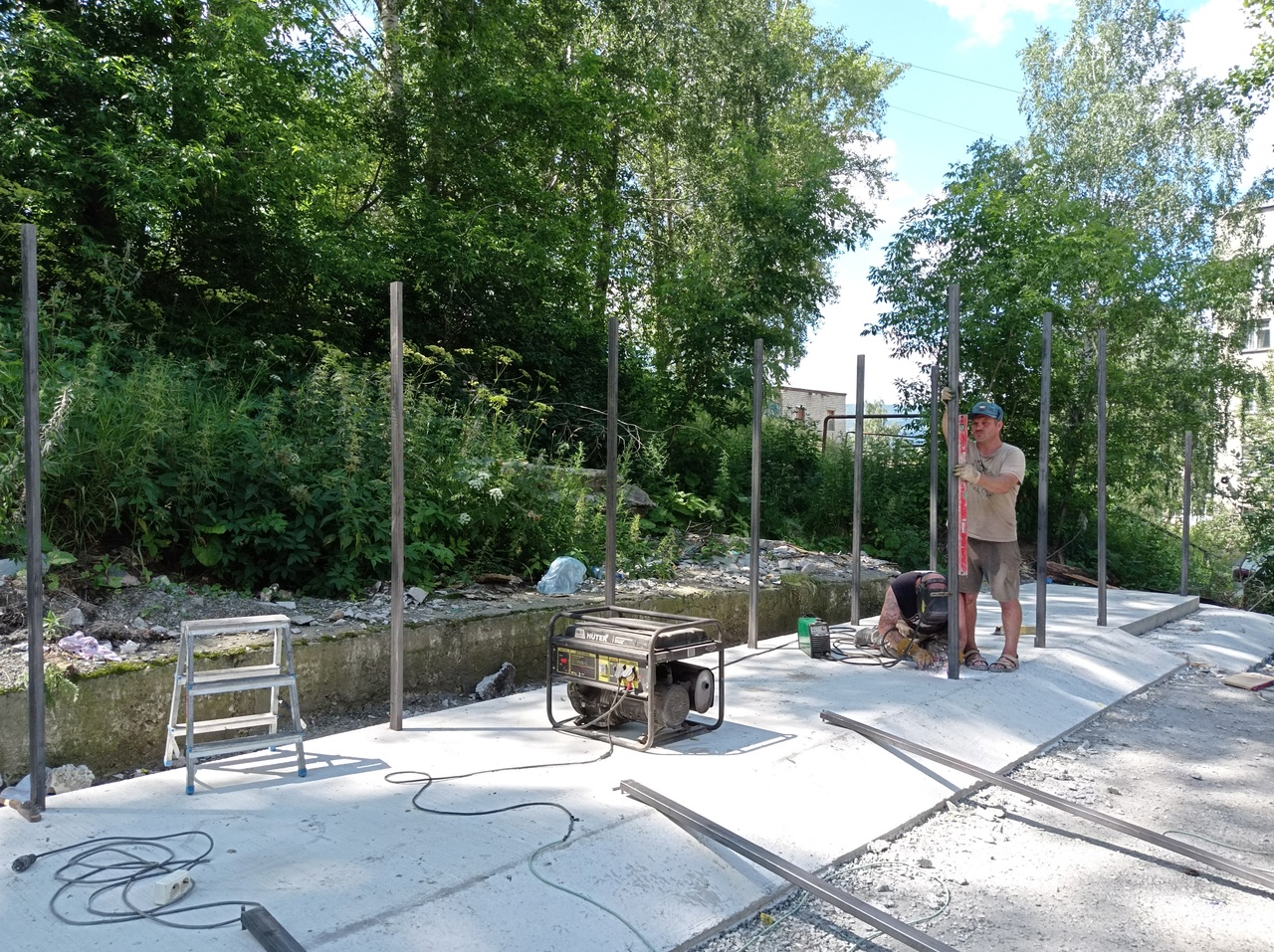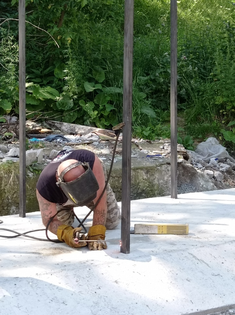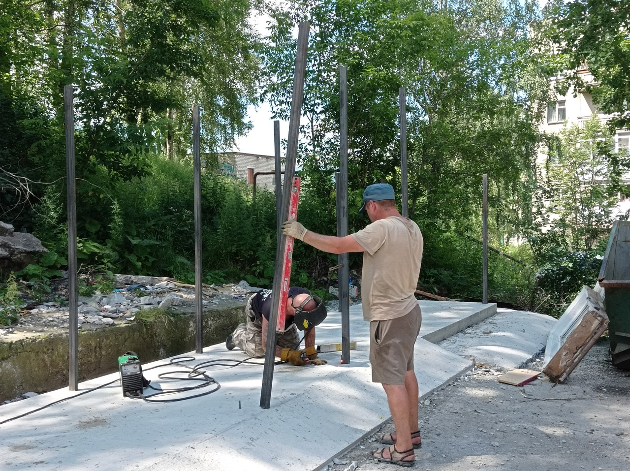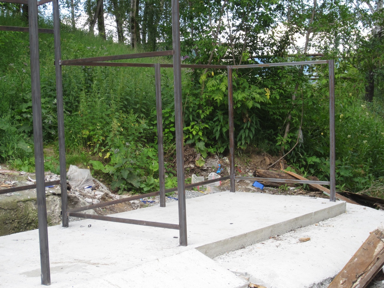 Так проводится бетонирование, установка металлического каркаса, отдельно обустроен «карман» для крупногабаритных отходов. Далее будет проведена облицовка металлопрофилем по трём сторонам периметра и установлена крыша.
