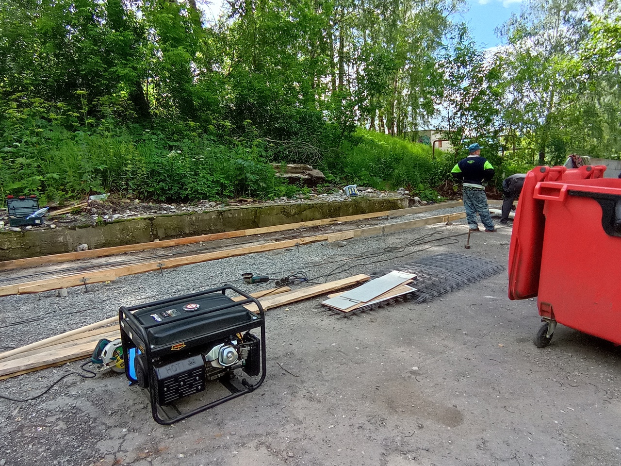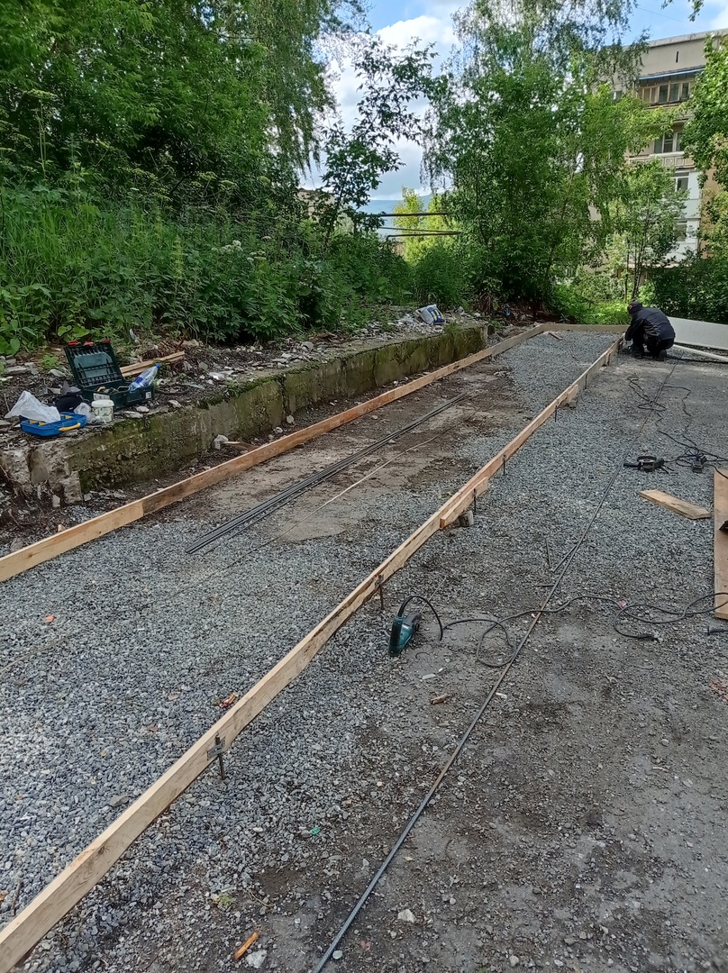Фото с обустройства контейнерной площадки, закреплённой реестром администрации ЗГО за домом – ул. Шишкина, 15.