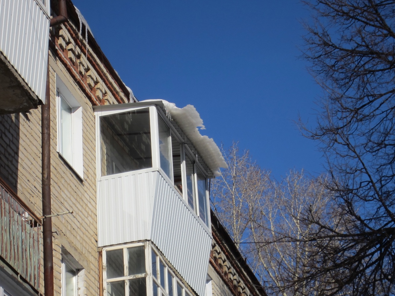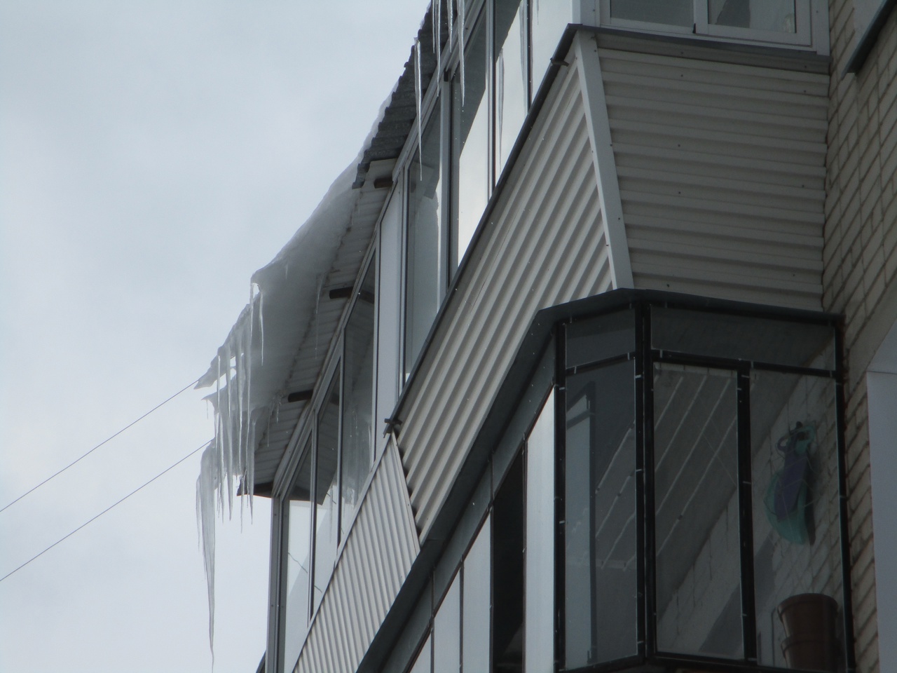 приводит к тому, что на козырьках и карнизах балконов образуется наледь, сугробчики, сосульки.