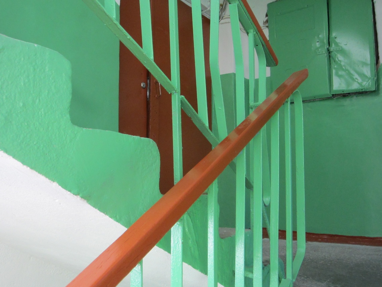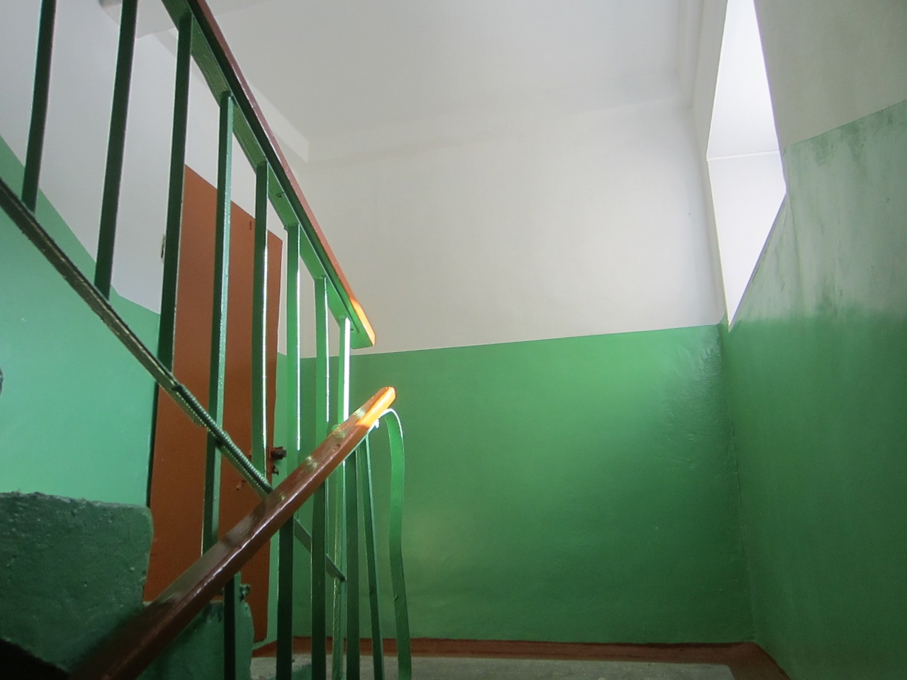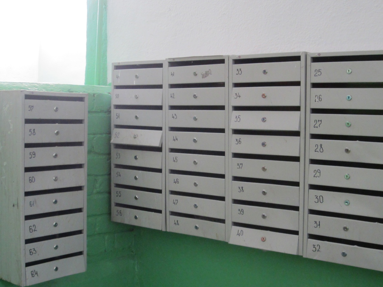 Поэтому внутреннее благоустройство девятиэтажки – побелка, покраска, естественно, начали с зоны наибольшей нагрузки – лестница, стены вокруг лифта, новые почтовые ящики.