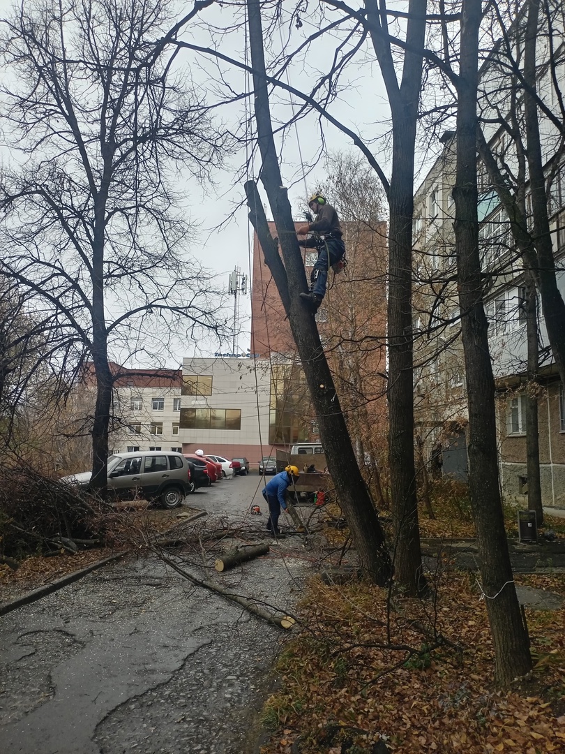 Стартовала осенняя обрезка деревьев на придомовой территории.