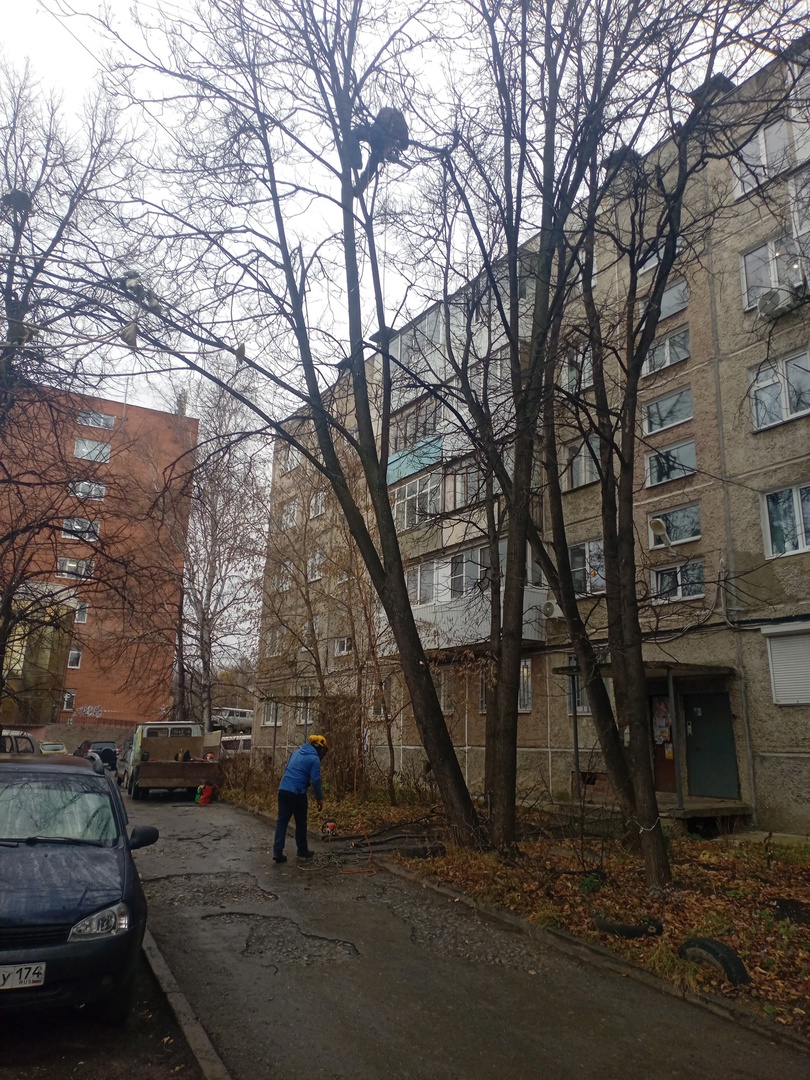 Стартовала осенняя обрезка деревьев на придомовой территории.