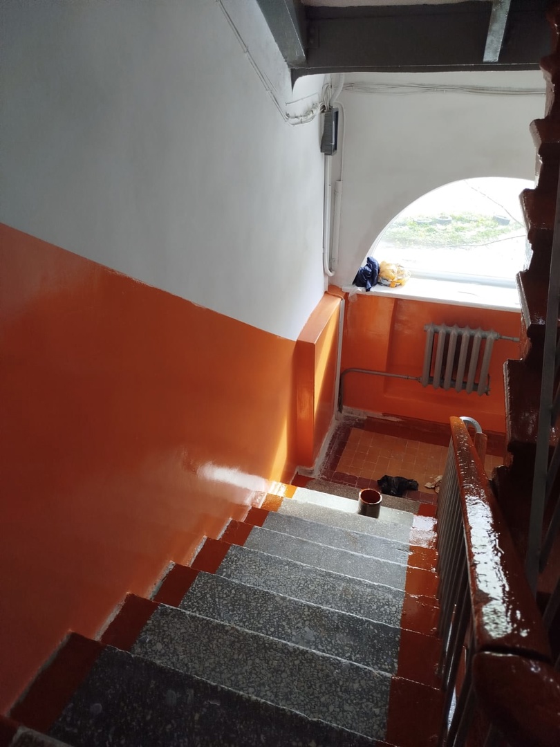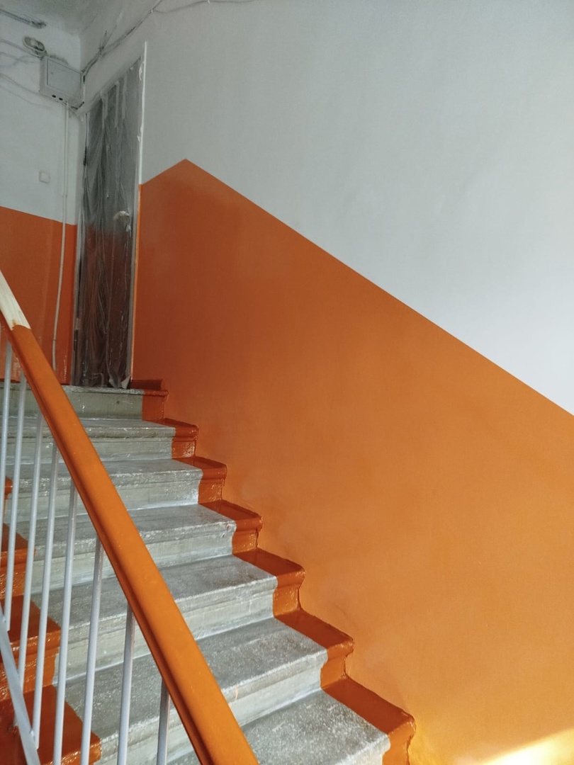 Оптимистичный цвет «медовой тыквы» для ремонта подъездов получает всё большую популярность. В этом случае, его одобрили жители второго подъезда дома №4 по ул. Просвещения (расположен рядом со школой №21)