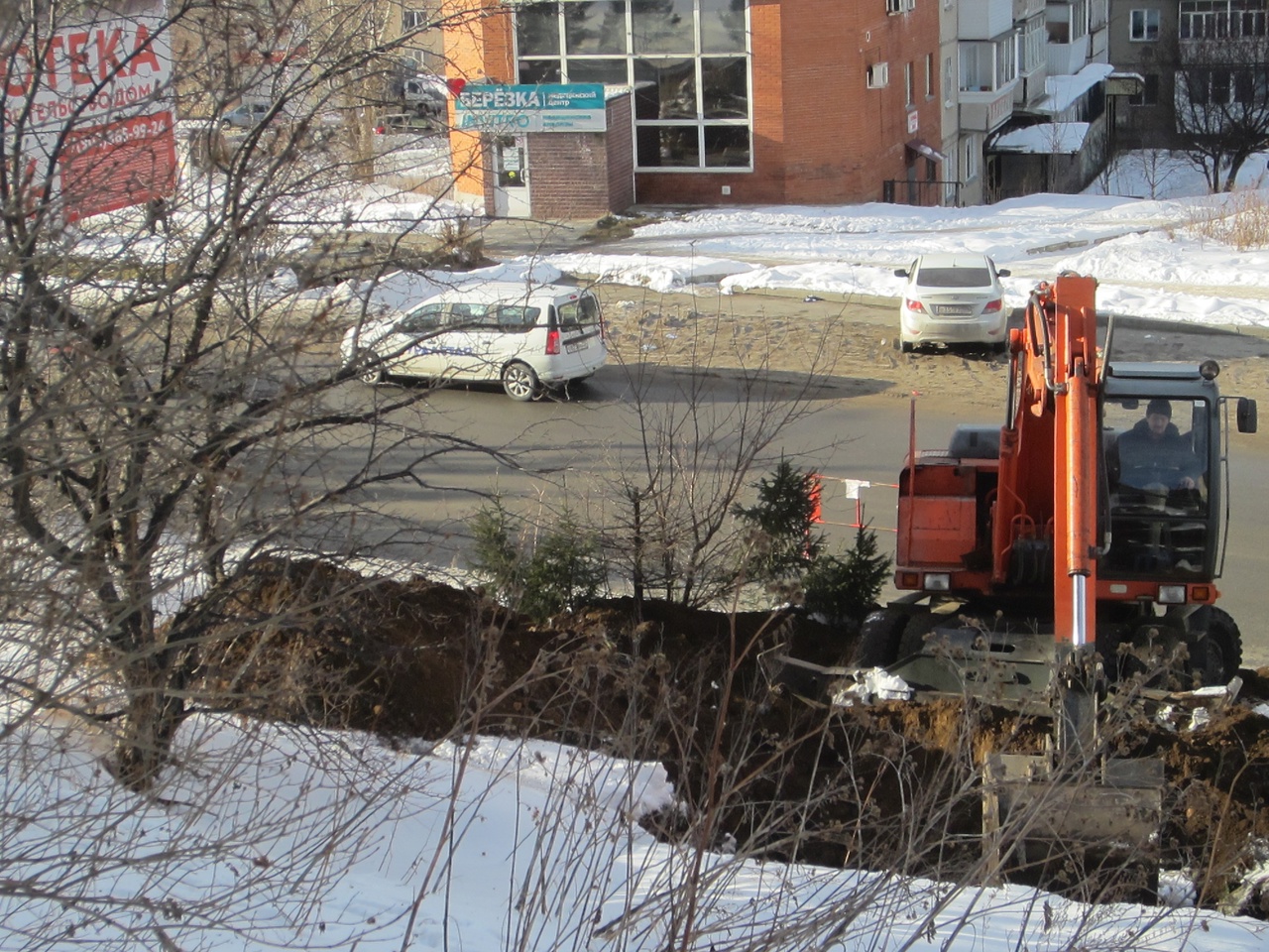 Вчера начались, а сегодня продолжаются «копательные» работы на косогоре ниже девятиэтажки – ул. 40 лет Победы, 10а. Силами специалистов АО «Златмаш» определяется причина парения около дома №15, расположенного на противоположной стороне дороги.