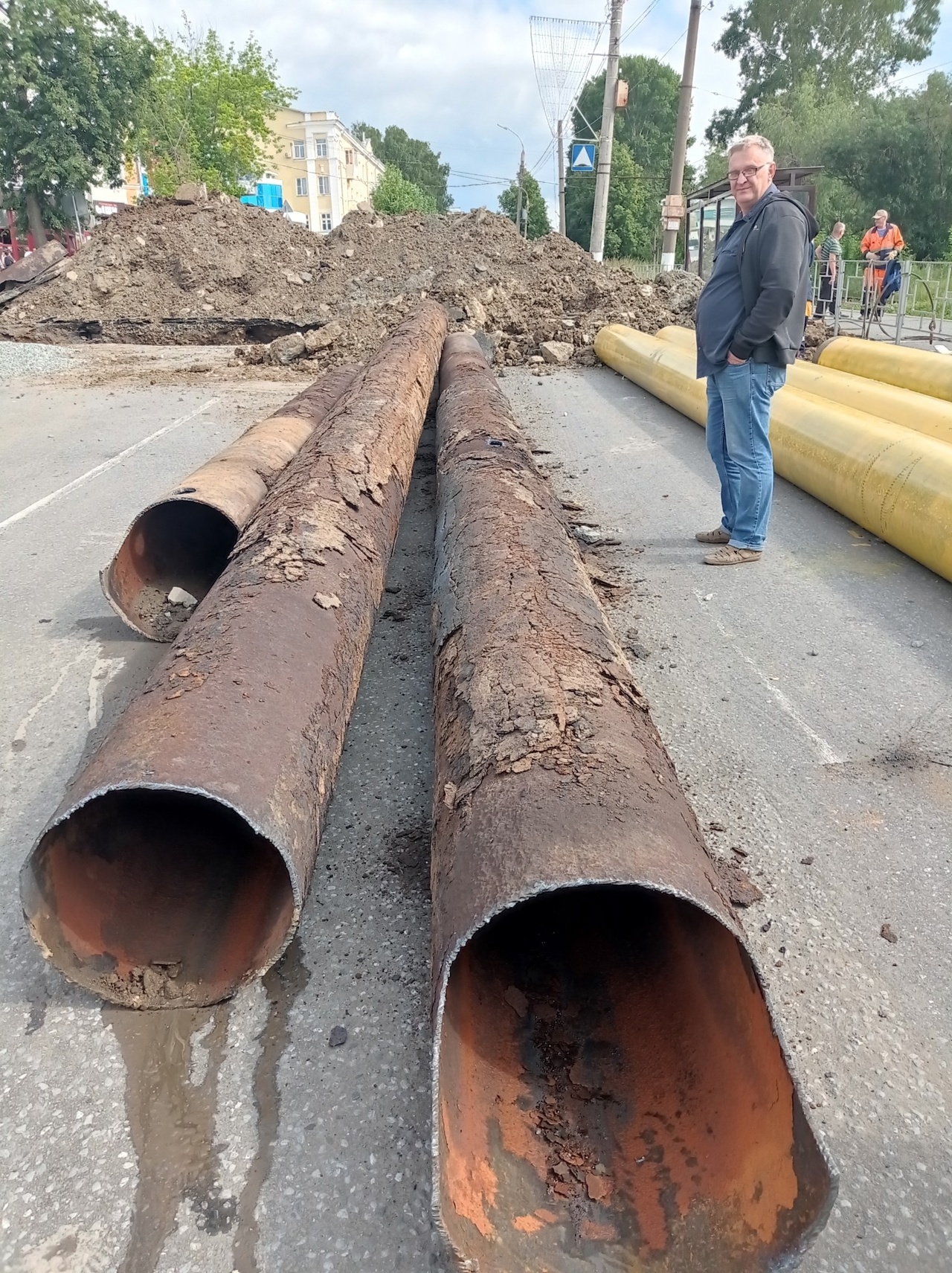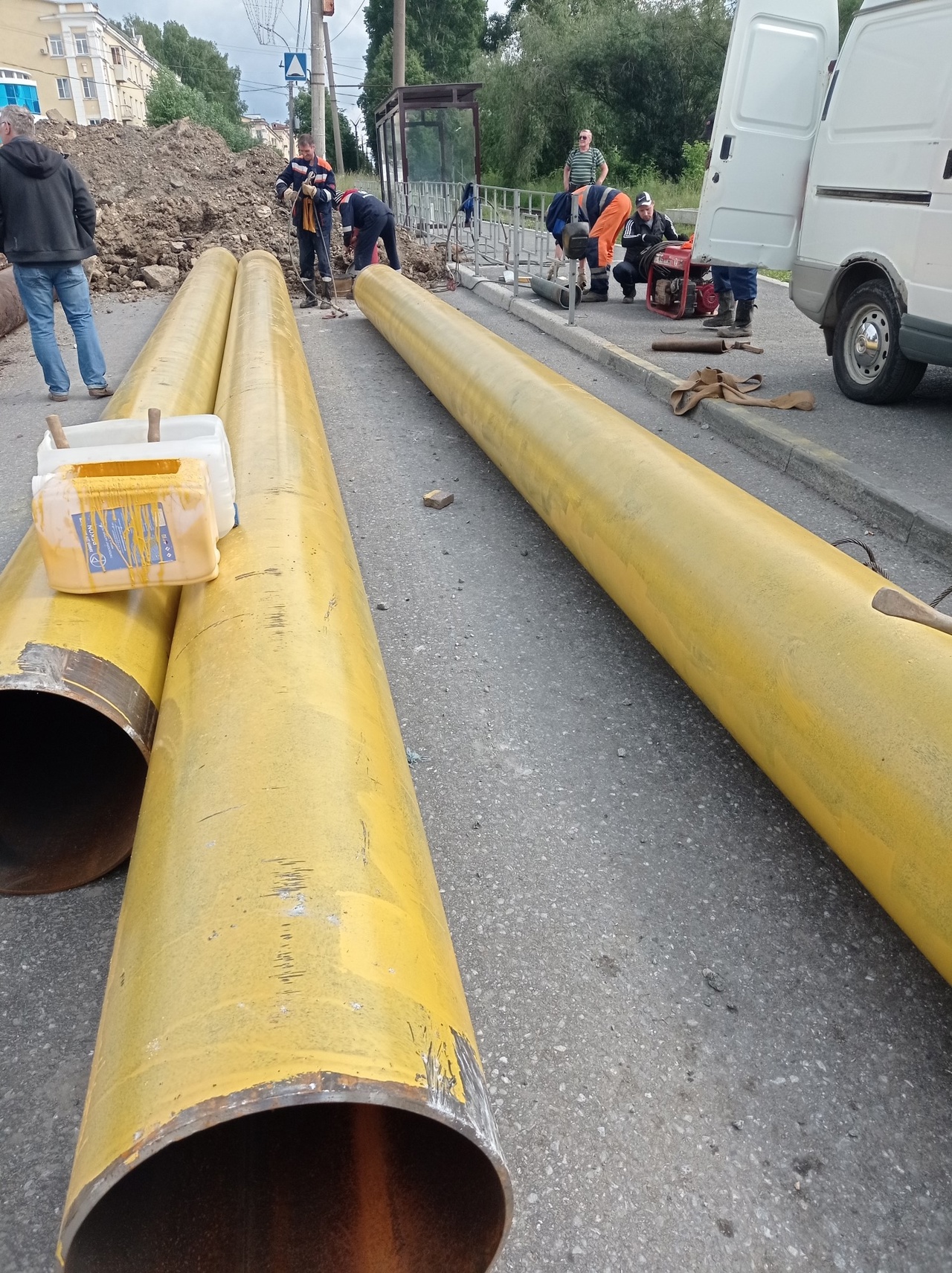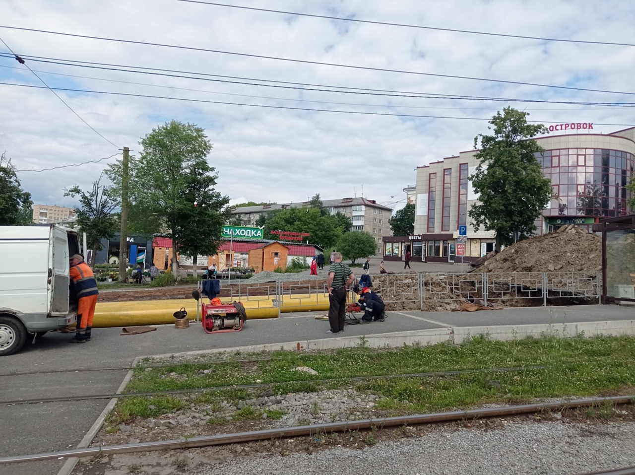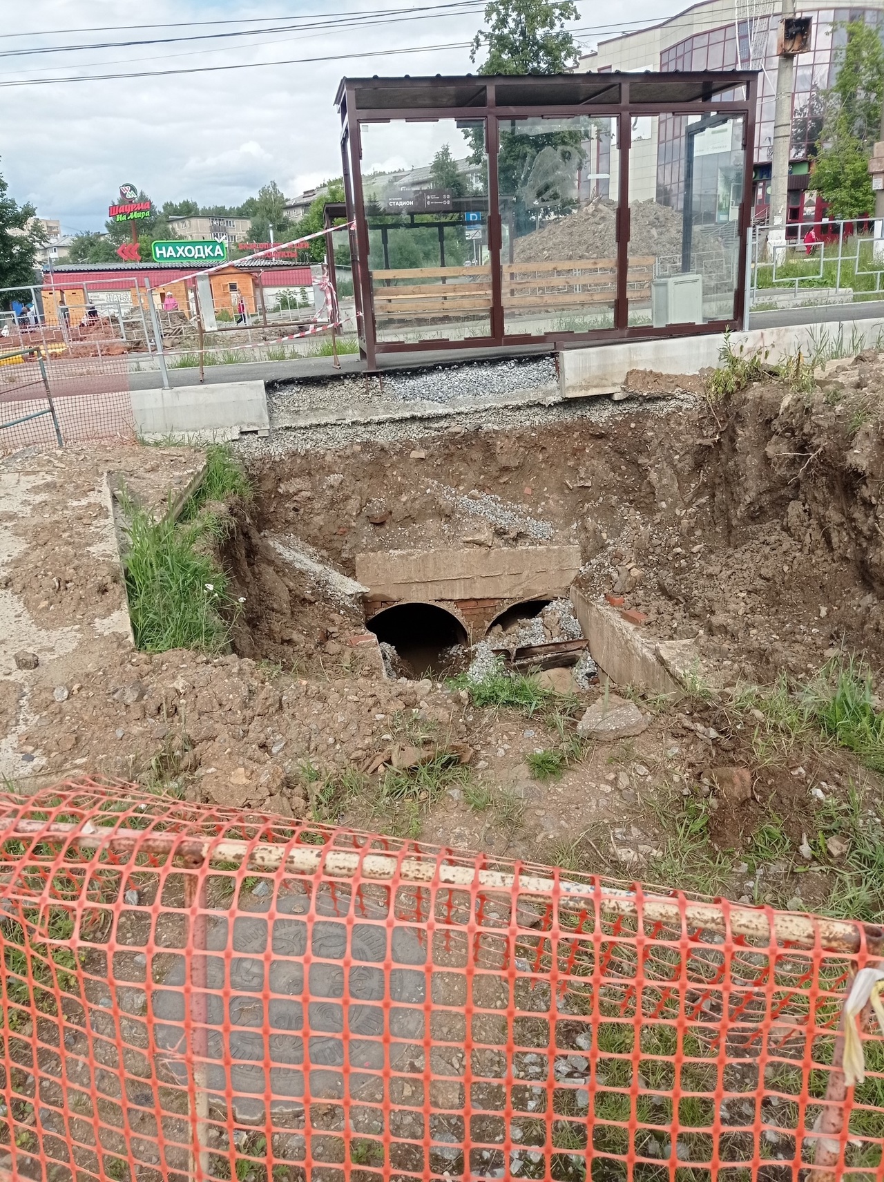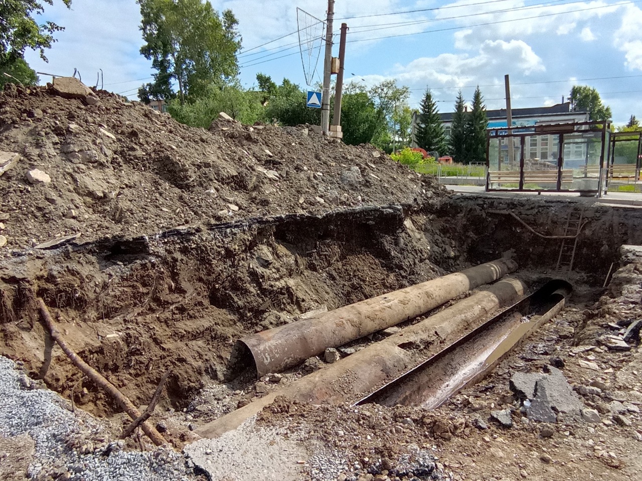 Продолжаются работы по замене коммуникаций на проспекте Мира около остановки «Стадион».
