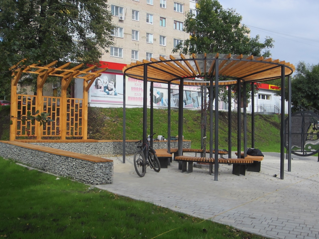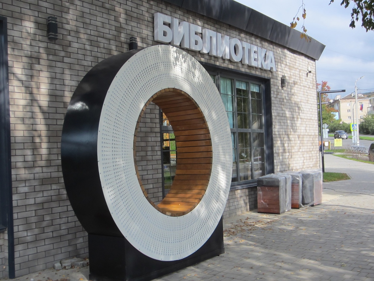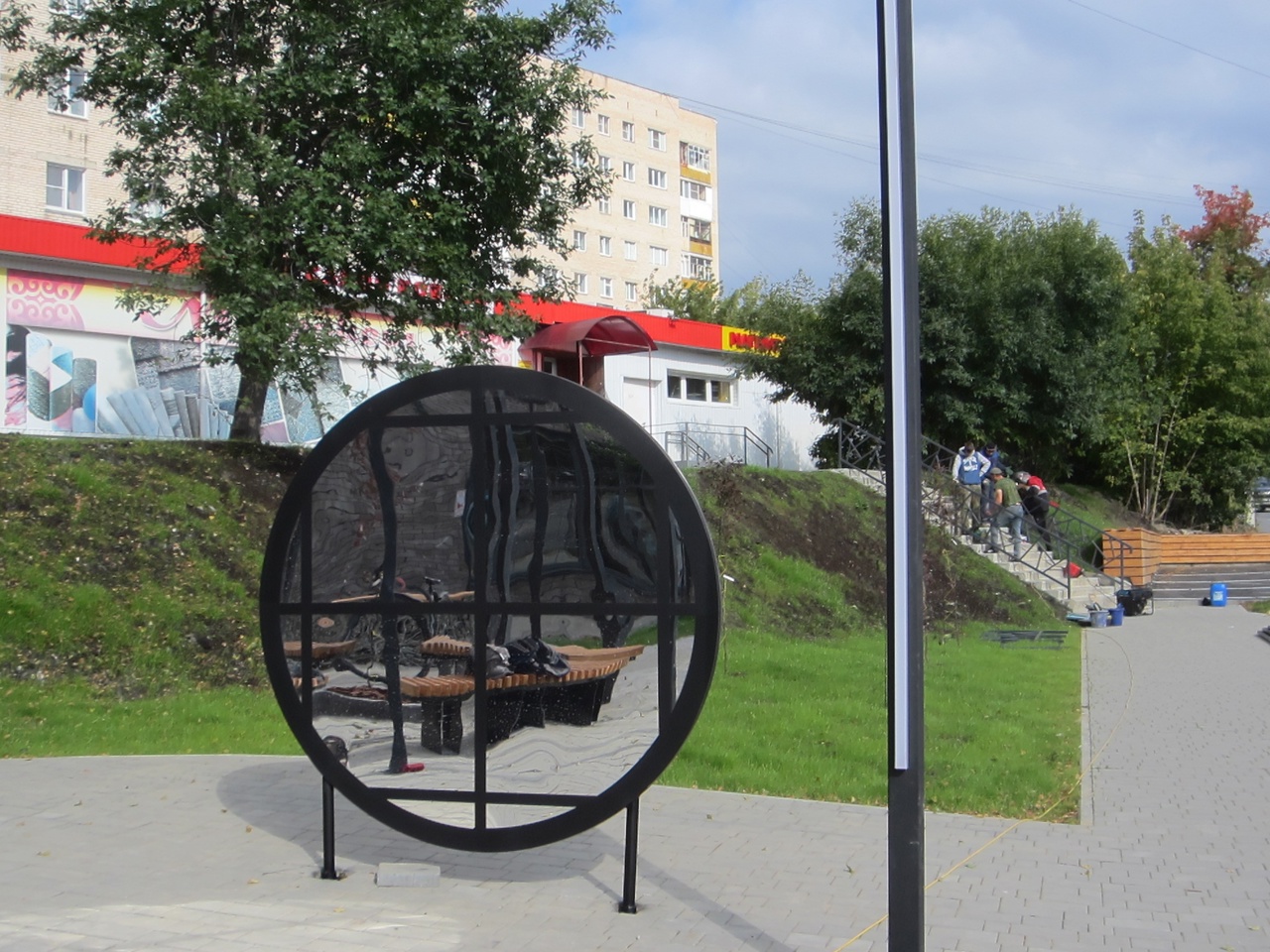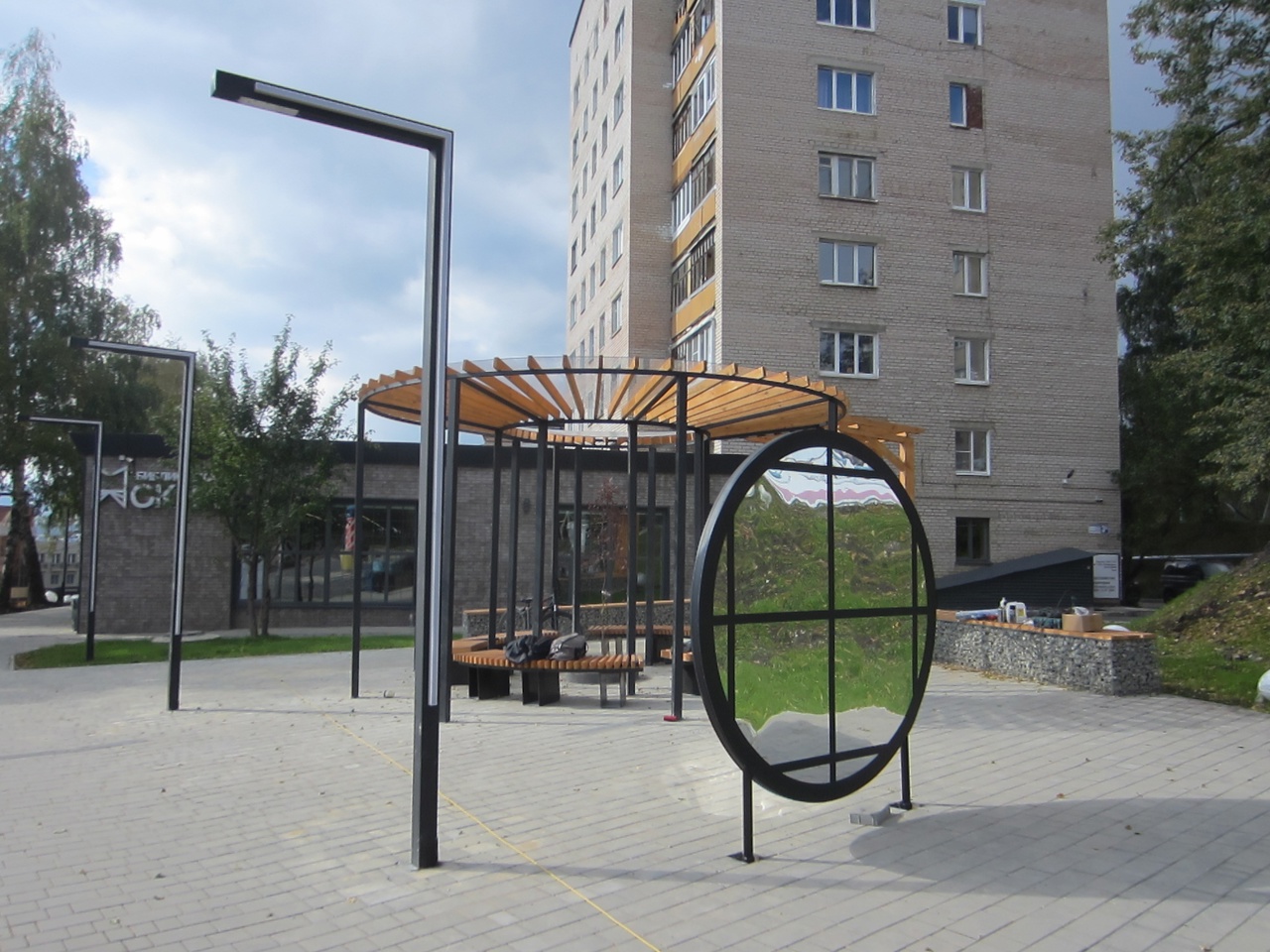 Сквер у дома №3а у библиотеки «Окна» постепенно дополняется малыми архитектурными формами.