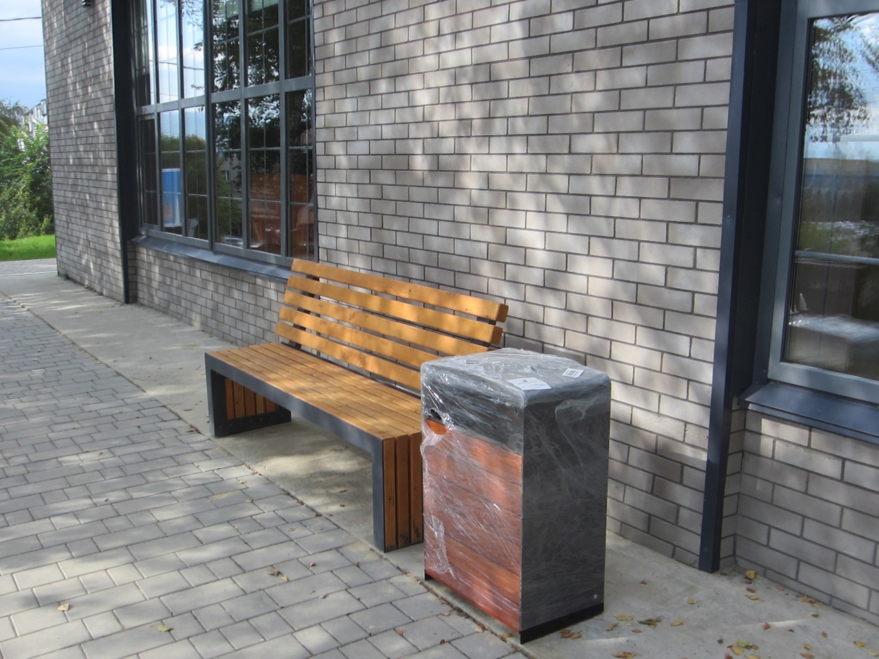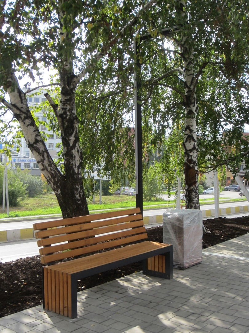 Продолжается установка урн, скамеек, почти закончена инсталляция – внутри деревце