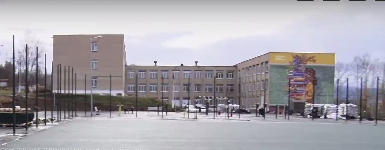Около школы организовано спортивное пространство для баскетбола, волейбола, мини футбола, дорожка для лёгкой атлетики.