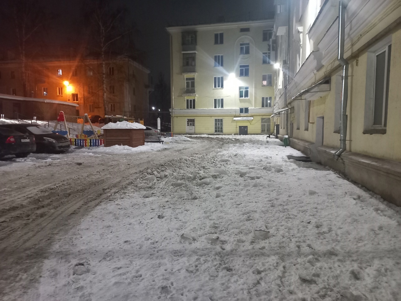 Дружный и хозяйственный дом №8 по проспекту Мира провёл субботник по очистке двора от снега и наледи.
