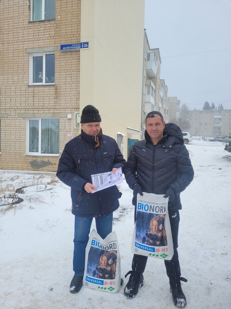 «У нас дворник очень ответственная, подошла к тестированию серьёзно – в соответствии с инструкцией, которую вместе с реагентом выдала управляющая компания, — рассказывает старший дома №26 по ул. 40 лет Победы Сергей Михайлович Рогожников, — посыпала ровно, аккуратно, понемногу из пакета, рукой в перчатке.