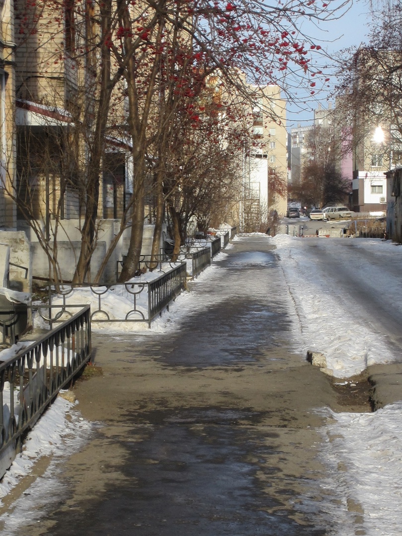 Снежок и наледь растаяли быстро, дворник просто смела их остатки. Потом, в последующие дни, когда шёл снег, он сразу таял на тротуаре, где была обработка