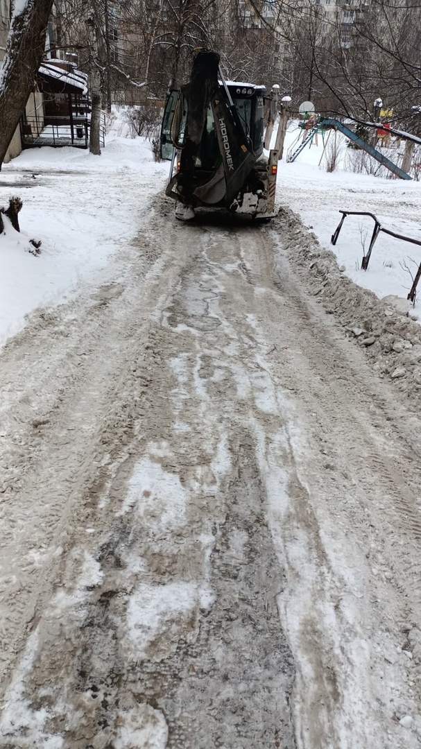 Конец января и начало февраля дали серьезную нагрузку на трактора – по заявке старших домов техника вышла разгребать снежные завалы на придомовых проездах.