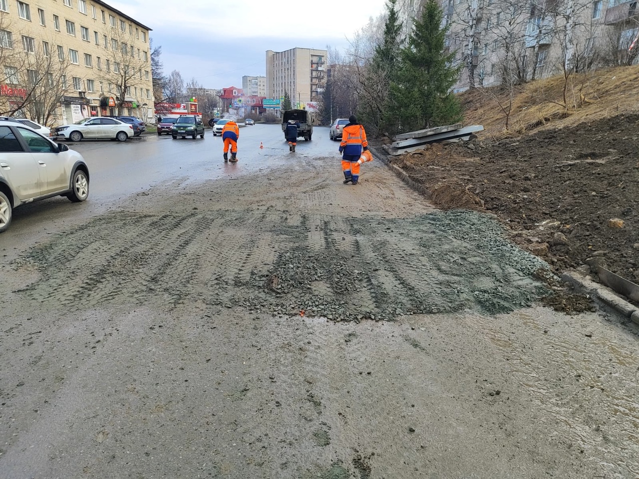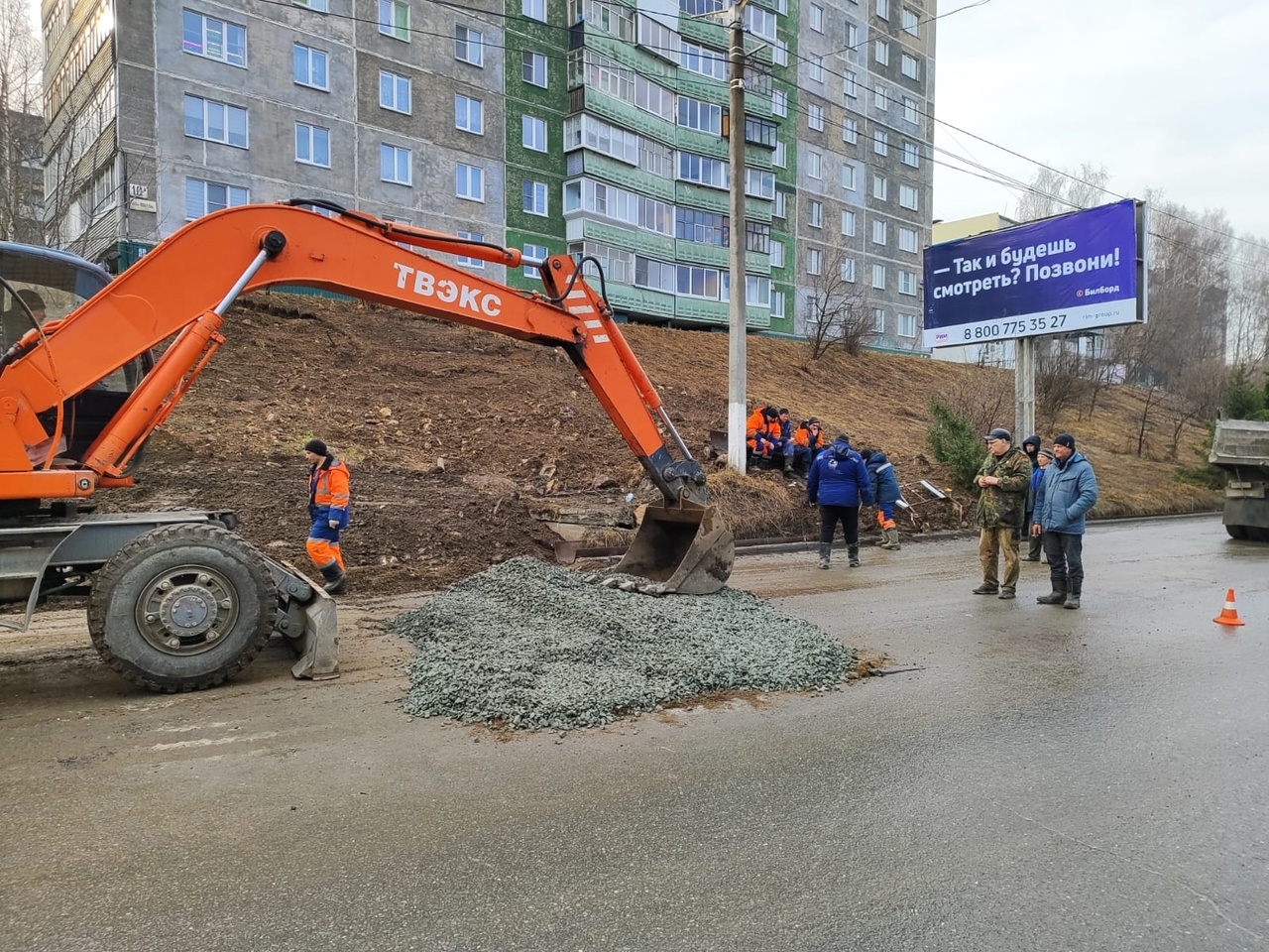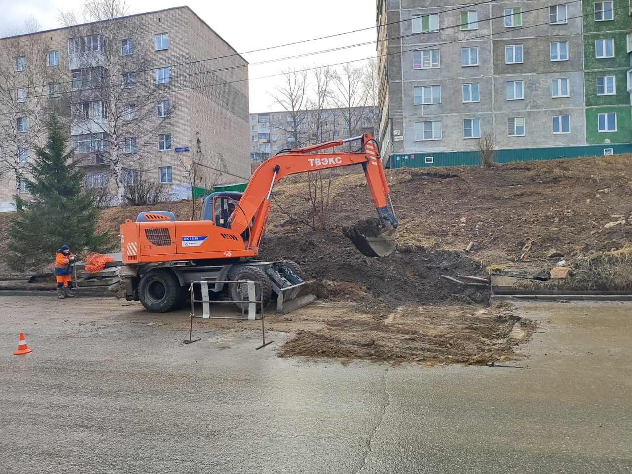 В субботу около 20 часов начали ремонтные работы по замене коммуникаций поперёк дороги от дома №15 к дому №10а по ул. 40 лет Победы.
