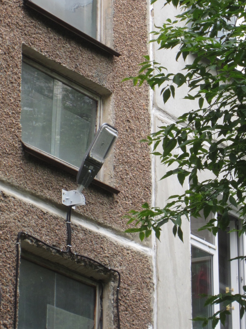 Чтобы подчеркнуть эту красоту и создать во дворе зону безопасности, на подъездах сейчас сияет современное экономичное уличное освещение.
