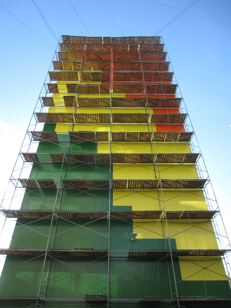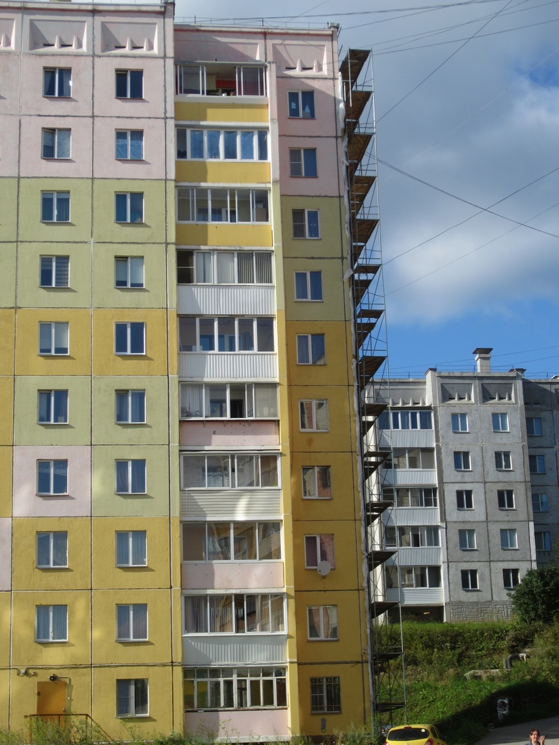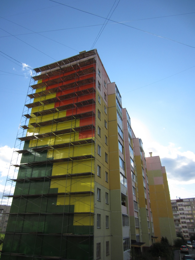 Дом №10 по ул. Южно-Есаульской выбрал для торцевой стены диагональную раскраску «светофор».