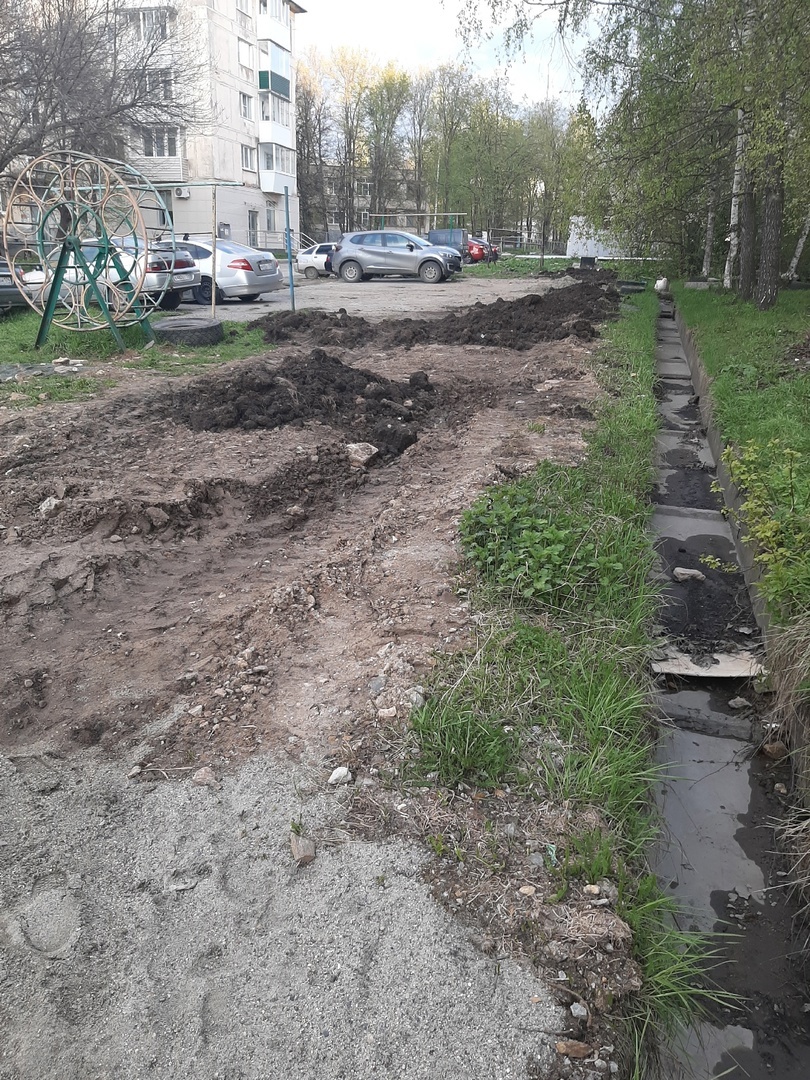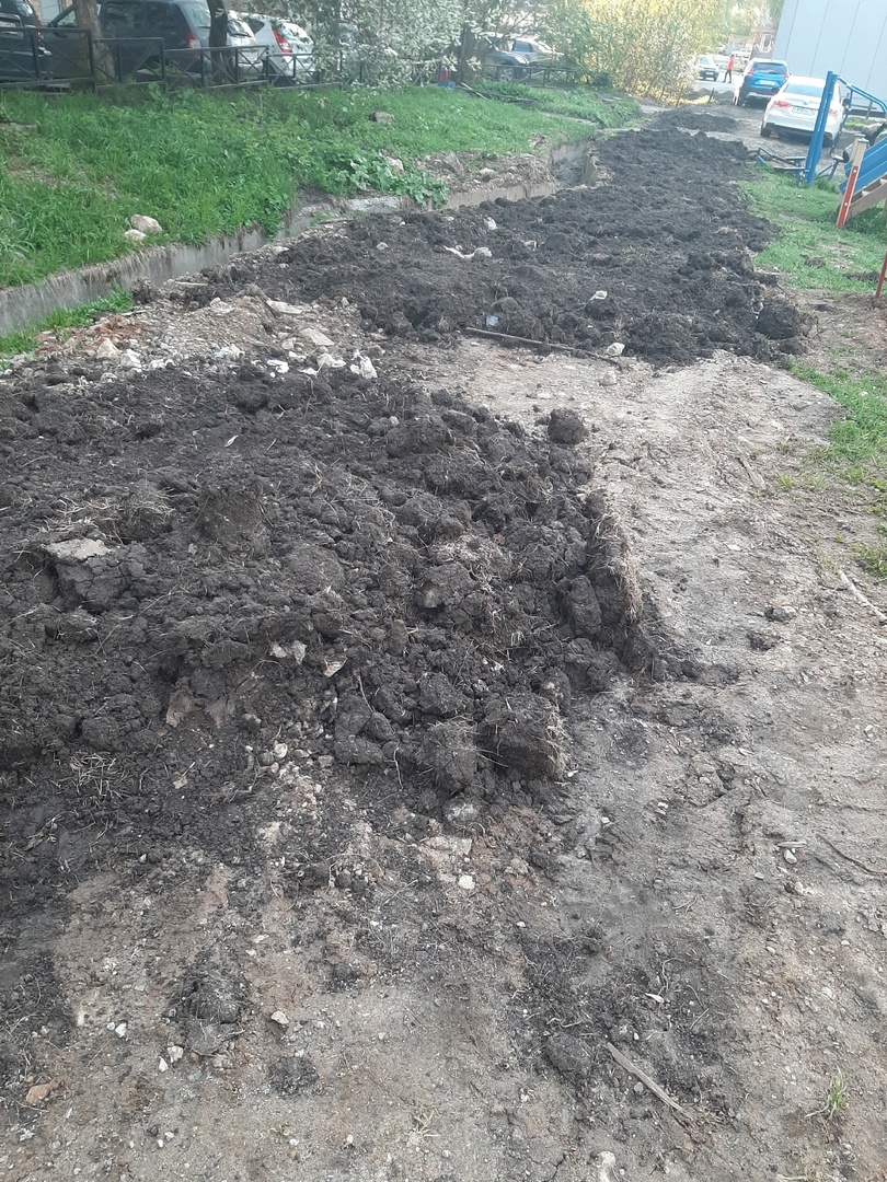 «Ну, что я могу сказать… Нам обещали, как вы помните, что до 15-го мая застройщик скандального здания, которое сдаёт в аренду во дворе проспекта Мира, 26, приведет двор в надлежащий вид. ОДНАКО, сделано не много: привезли землю, накидали, как попало, и думают, что жители дома выйдут с граблями и будут сами разравнивать???