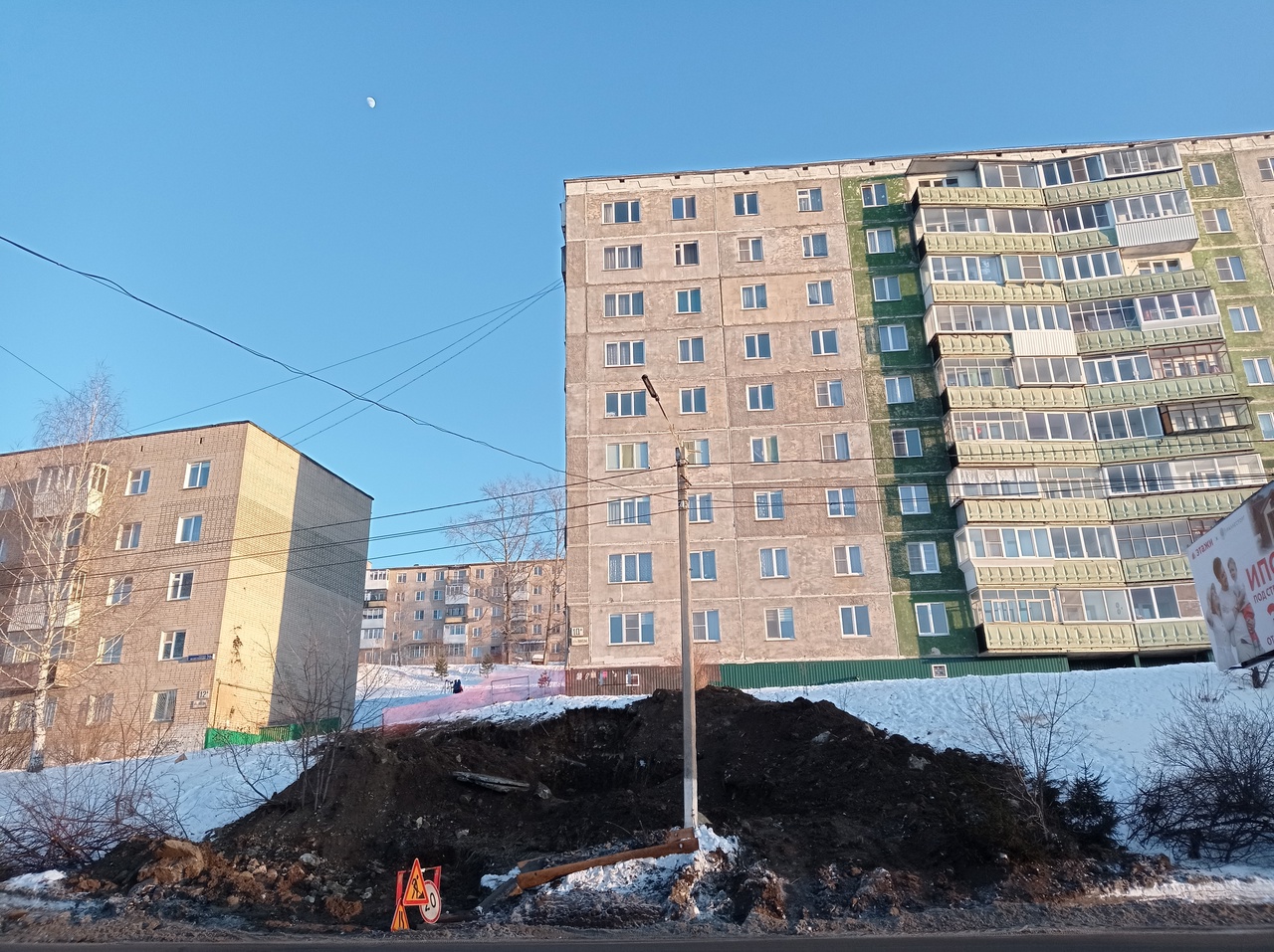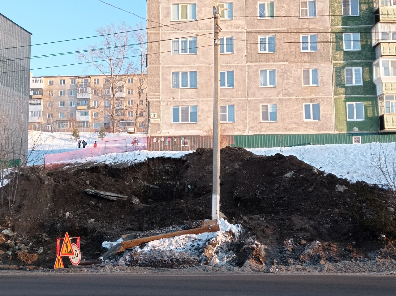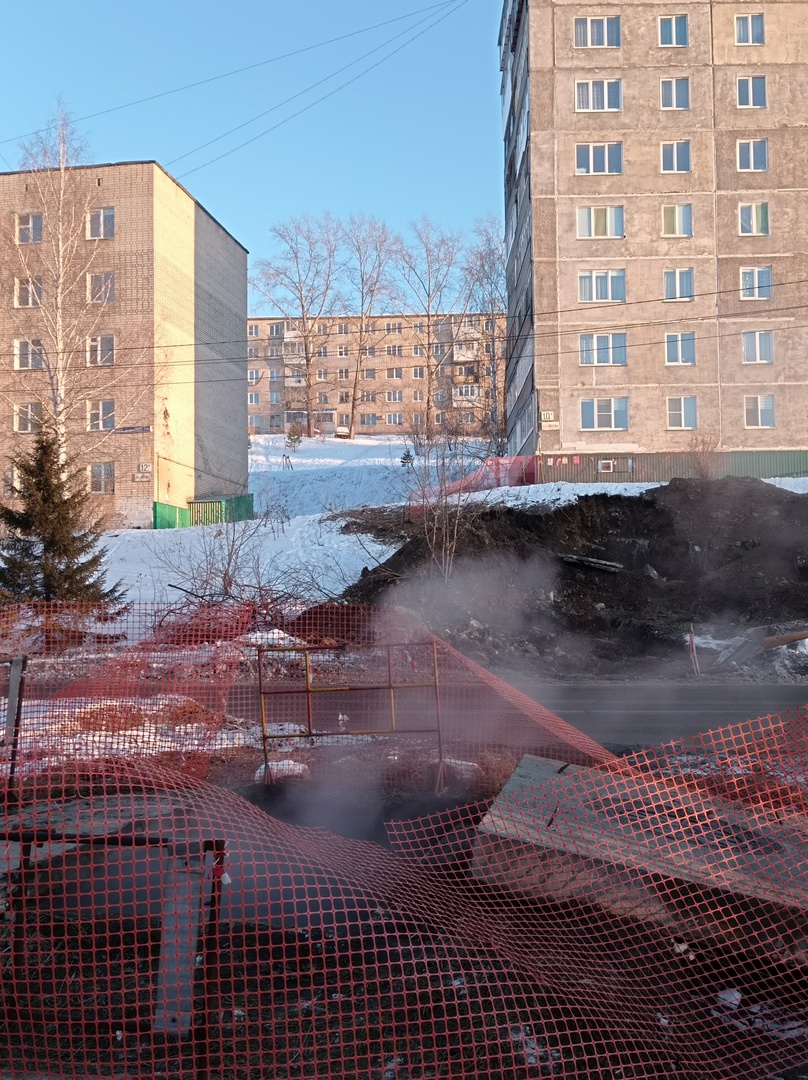 Сегодня исполнители работ закапывают ямы, чтобы закрыть тепловую камеру, и восстанавливают ливнёвку, проходящую от дома №10а.