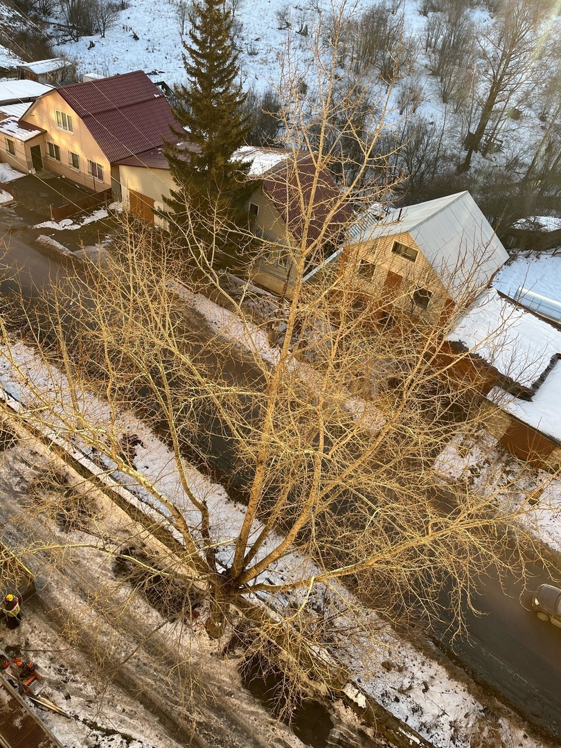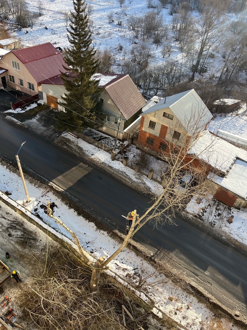 Пока не ударили морозы, у наших домов продолжается спил аварийных веток и деревьев. Вчера велись работы у дома №25 по ул. Полетаева.