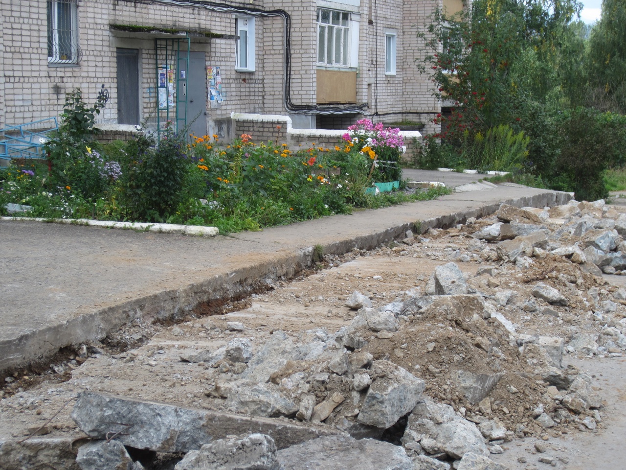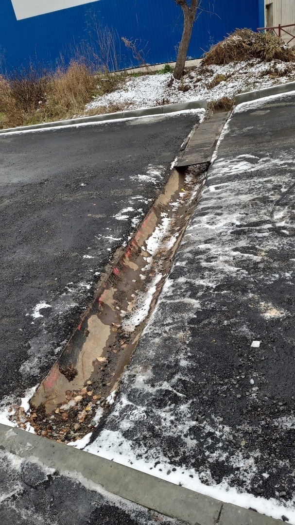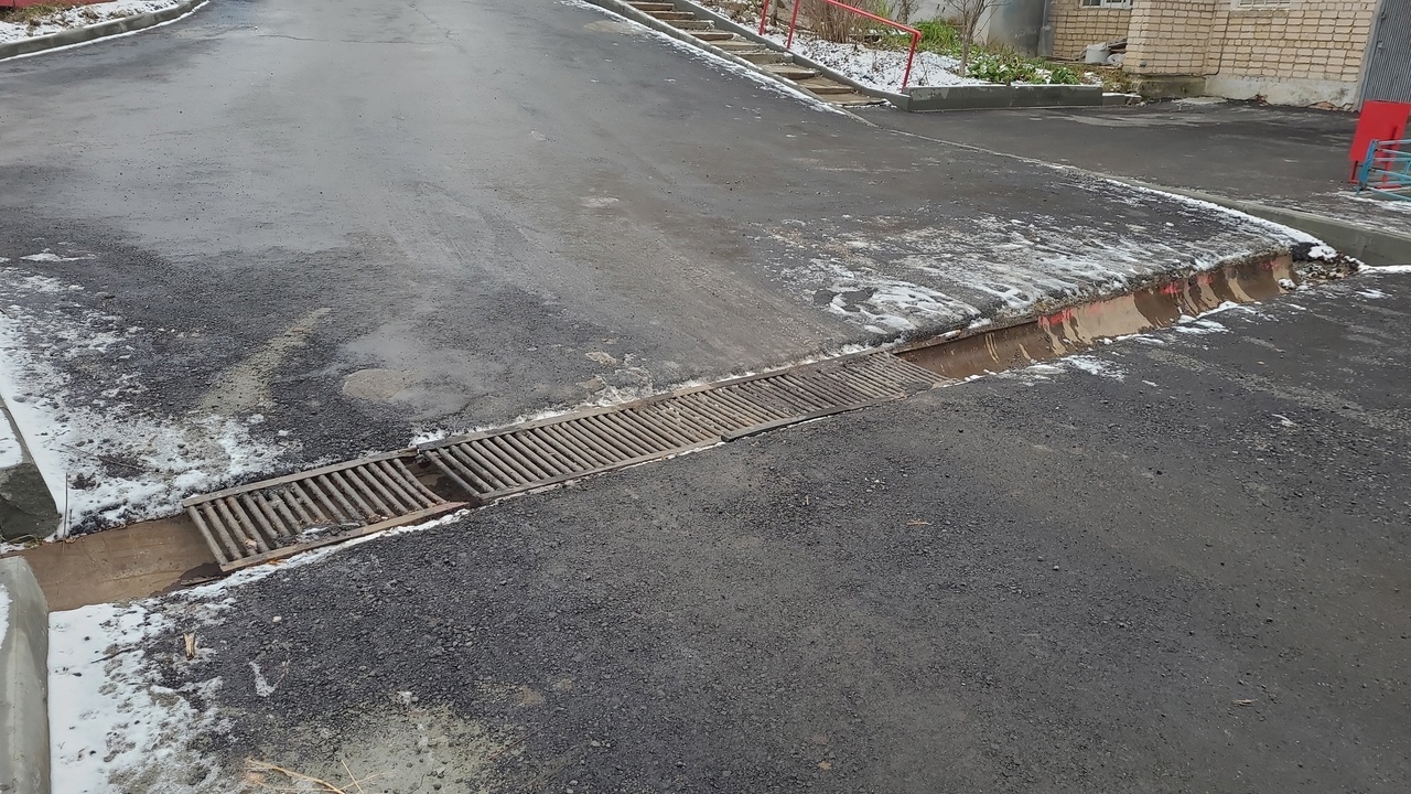 Сложности возникли с ограждением и ливневой канавой, проходящей через дорогу двора. В проекте программы её не было, а во время работ её засыпали камнями и сломали решётку.