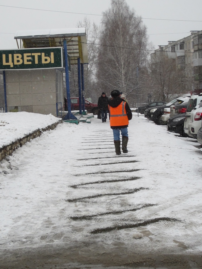 Тротуары по-прежнему, как в стародавние времена, посыпают отсевом. Работники трудились старательно – в этот день шёл снег, маскируя островки льда на тротуаре вдоль поликлиники, но их зорко выявляли и добавляли дополнительную порцию посыпной субстанции.