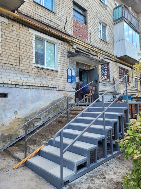 У второго подъезда дома №3 по ул. Грибоедова начали устанавливать новое крыльцо.