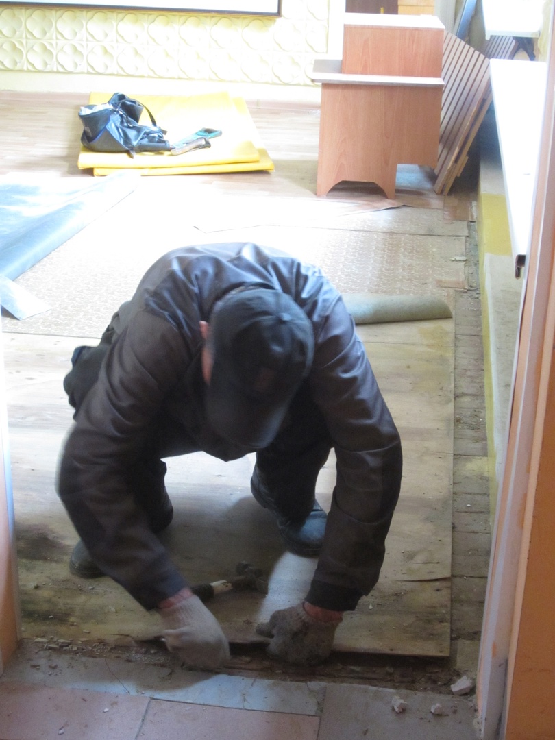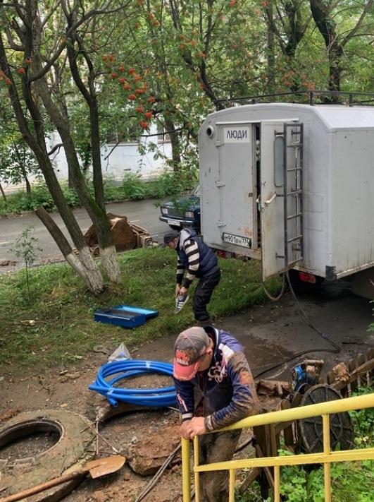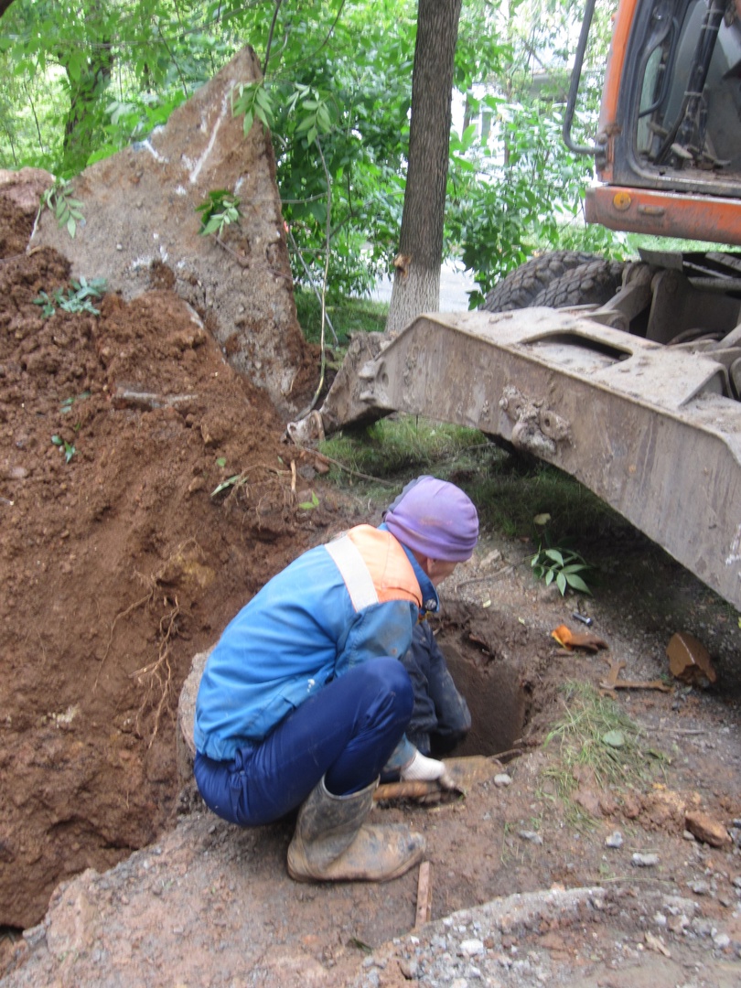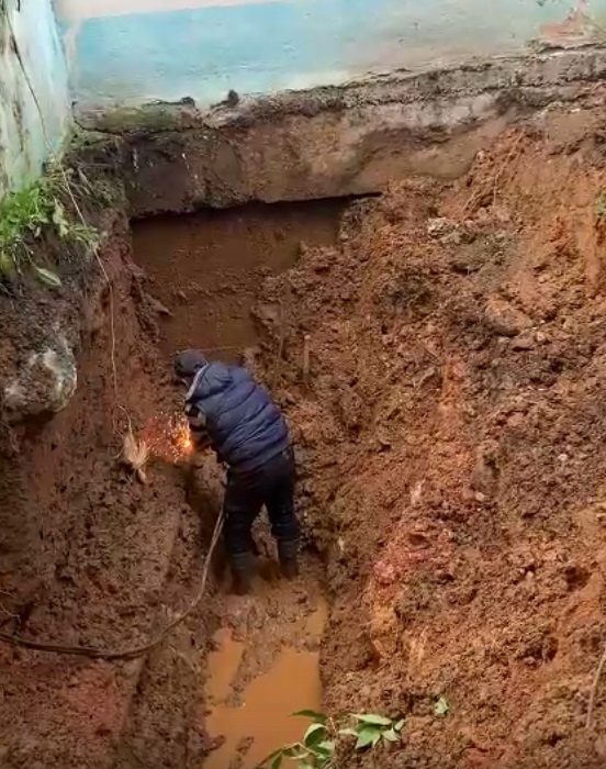 Дом №28 по ул. Дворцовой два дня был без холодной воды, шли совместные ремонтные работы: бригада водопроводных сетей МУП ЗГО «Златоустовское водоснабжение» заменяла трубу, а наши специалисты были вынуждены вскрывать пол в здании бывшего детского сада, где коммуникации проржавели насквозь.