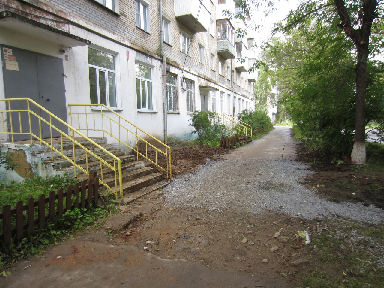 Громадную яму закопали, тротуар отсыпали щебнем – первые работы по благоустройству территории производителем работ — МУП ЗГО «Златоустовское водоснабжение».