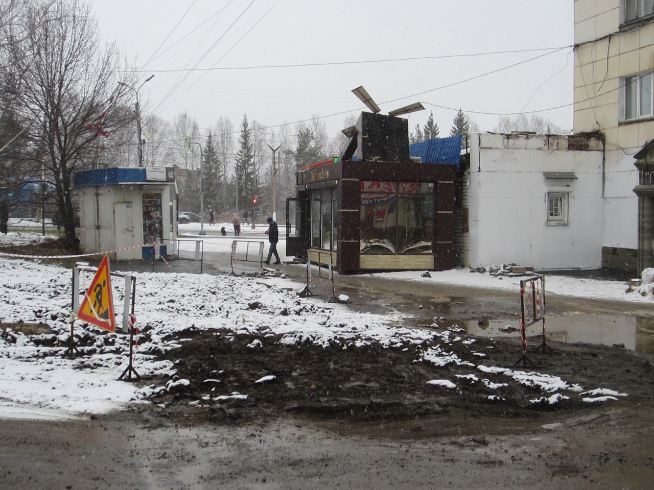 Теперь идёт подготовка к масштабным работам. Киоски отключали от воды и электроэнергии. Сегодня утром переставляли.