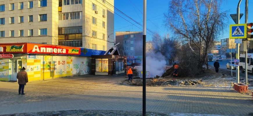 Готовиться площадка для работ по замене части теплотрассы между ул. 40 лет Победы и верхним торцом дома пр-т Мира, 22 (Универмаг). Киоски Роспечать и хлебный
