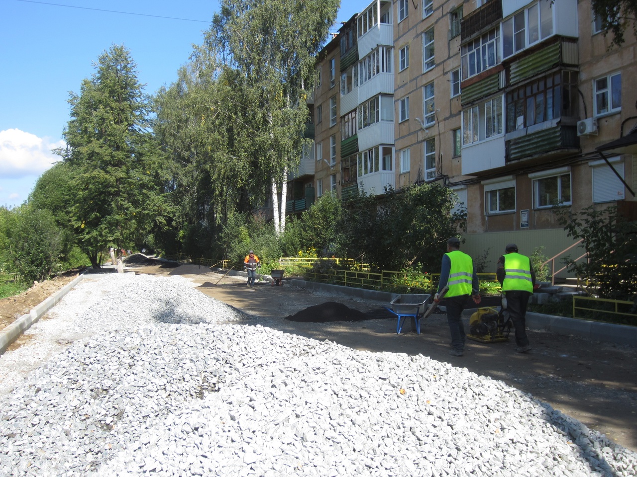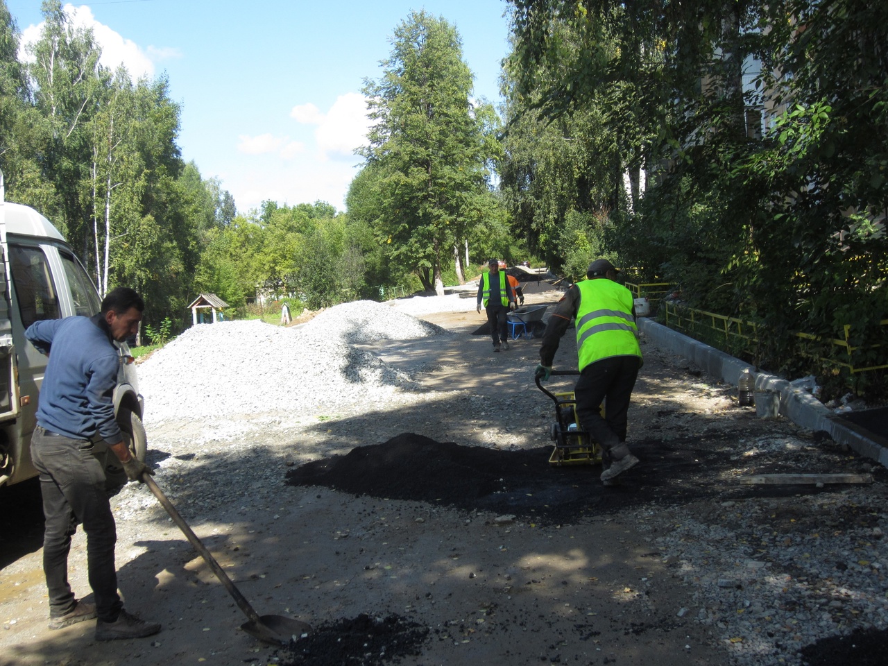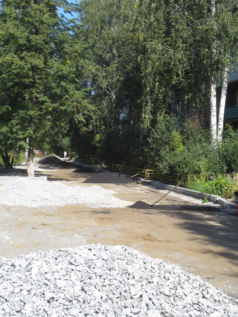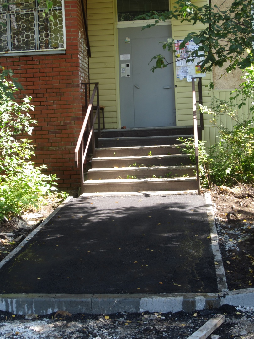 Асфальтируются подходы к крылечкам, в планах – придомовой проезд и парковка.