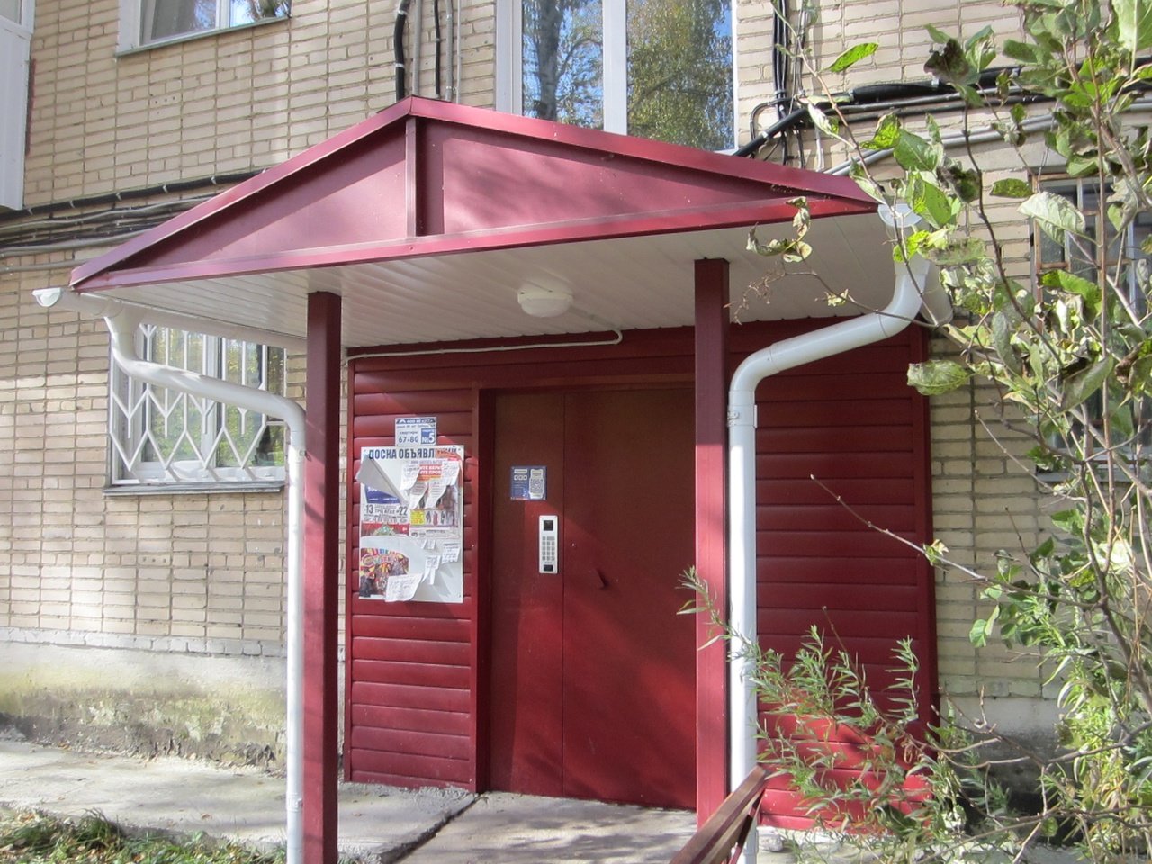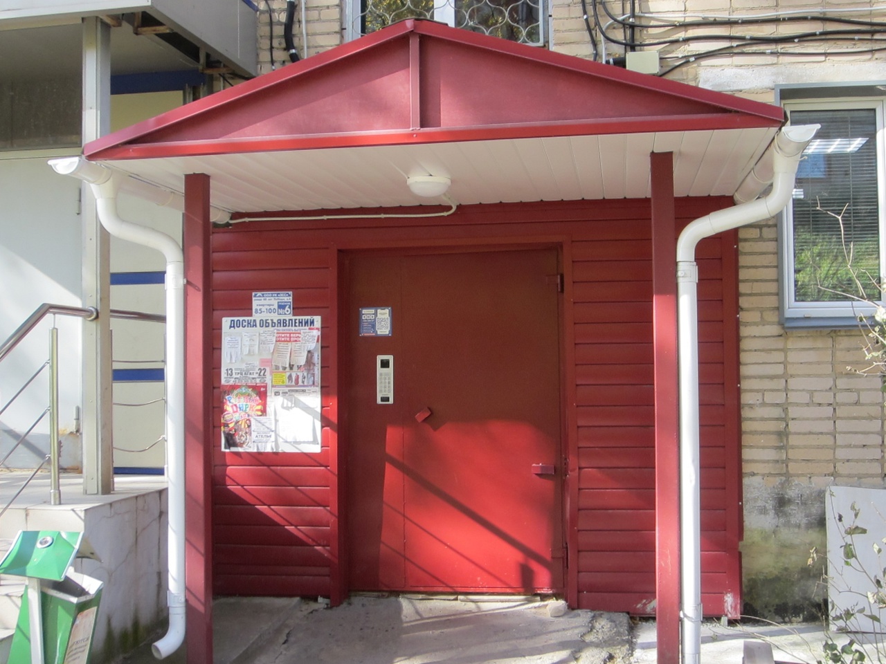 Поэтому этим летом было решено покрасить входные двери в цвет, гармонирующий с внешним оформлением входов.