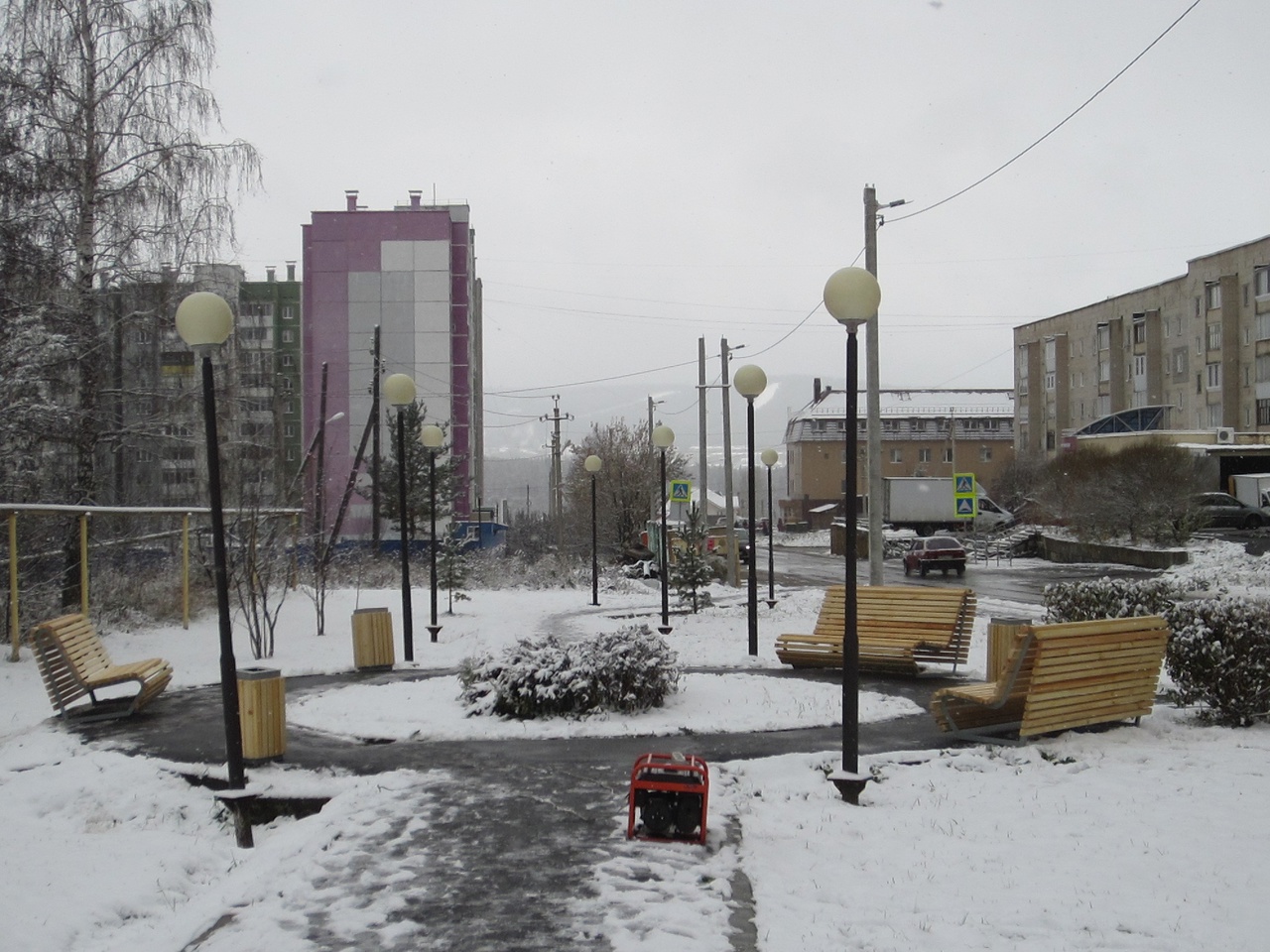 А в декабре по инициативе Маргариты Геннадьевны Микериной, жительницы одного из соседних домов, и благодаря усилиям начальника Управления ЖКХ Андрея Юрьевича Самохвалова изготовили и привезли в сквер новые скамейки и урны.