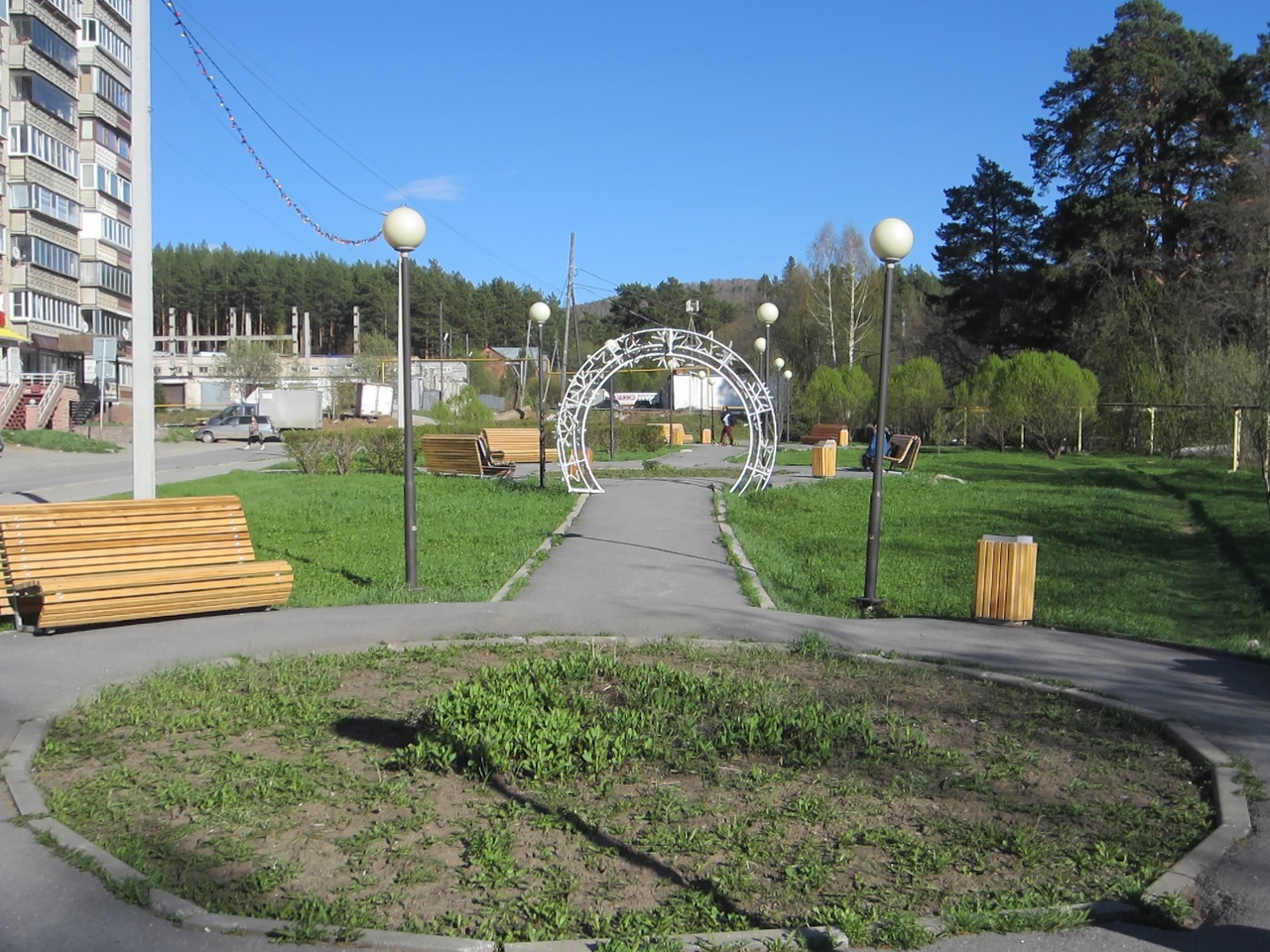 В сентябре 2019-го года ко Дню Златоуста Сергей Филиппович Белоглазов ещё не будучи директором нашей управляющей компании, а как житель района установил в сквере лавочки и урны.