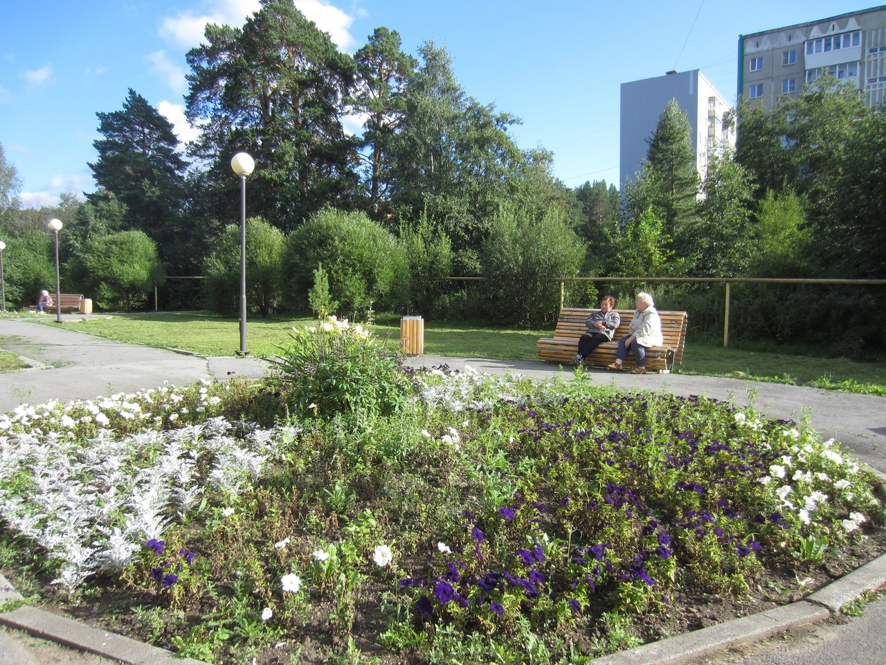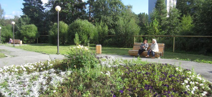 Жители ближайших домов с удовольствием греются на солнышке и ведут неспешные беседы в этом уютном уголке района.