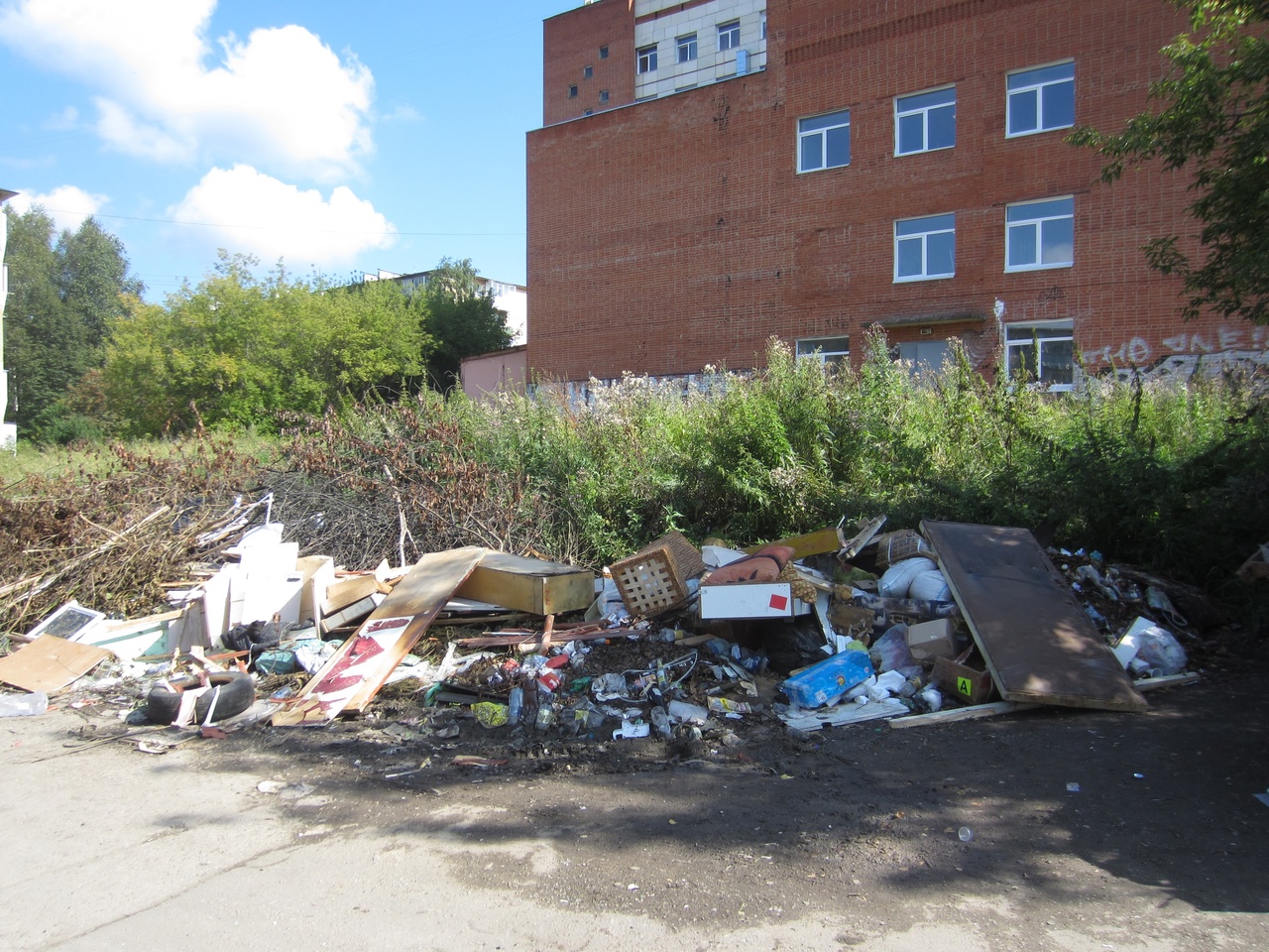 Также на площадке складируются крупногабаритные отходы, вывоз которых невозможен обычным мусоровозом и производится специальной коммунальной техникой, ломовозом, по отдельному графику. Отходы были вывезены 28 августа».