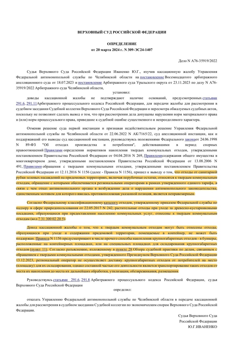 Да, площадка находится в неудовлетворительном состоянии, о чём неоднократно писано-переписано. Но по какой причине? Мы уже неоднократно прилагали скан документа – определение Верховного суда РФ – в котором чётко прописано, что ветки относятся к ТКО и вывозить их должен ЦКС в рамках тарифа — жители за это ежемесячно платят. Вопрос, кто прав – Верховный суд РФ или регоператор ЦКС? Ответ очевиден.